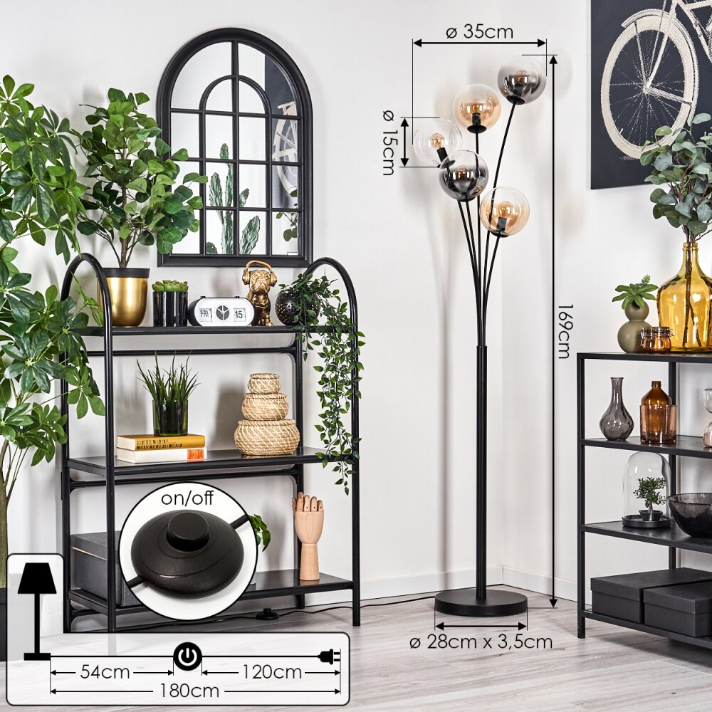 Gastor Staande lamp - Glas 15 cm Amber, Duidelijk, Rookkleurig, 5-lichts