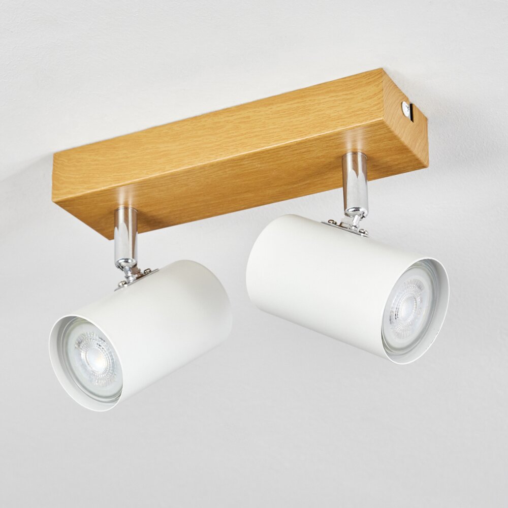 Gesteira Plafondlamp, Plafondspot Chroom, houtlook, 2-lichts