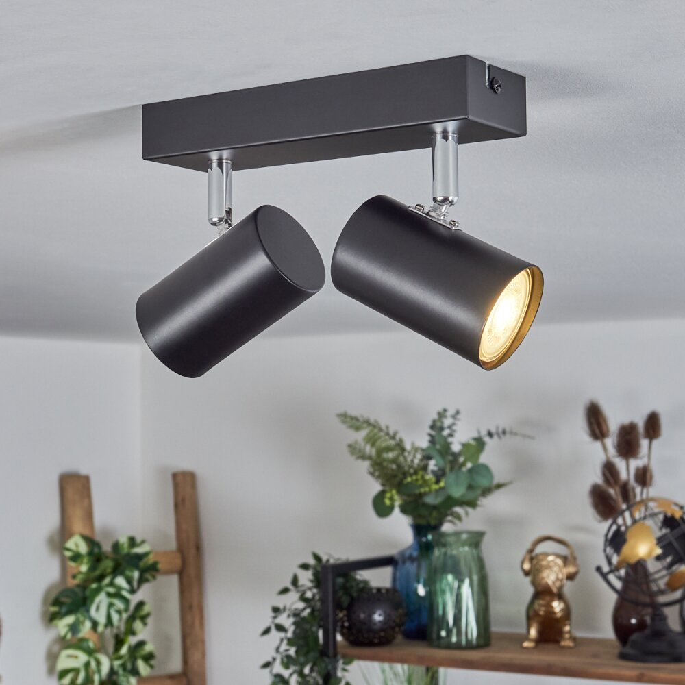 Gesteira Plafondlamp, Plafondspot Chroom, Zwart, 2-lichts
