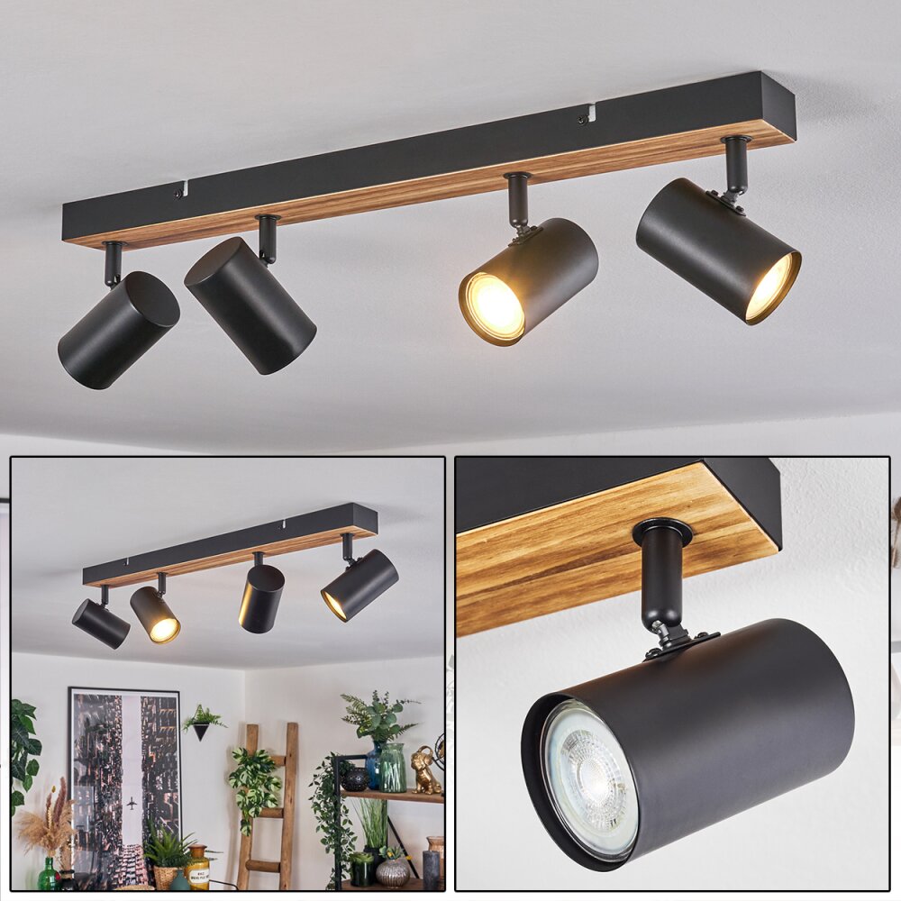 Gesteira Plafondlamp, Plafondspot Hout donker, Zwart, 4-lichts