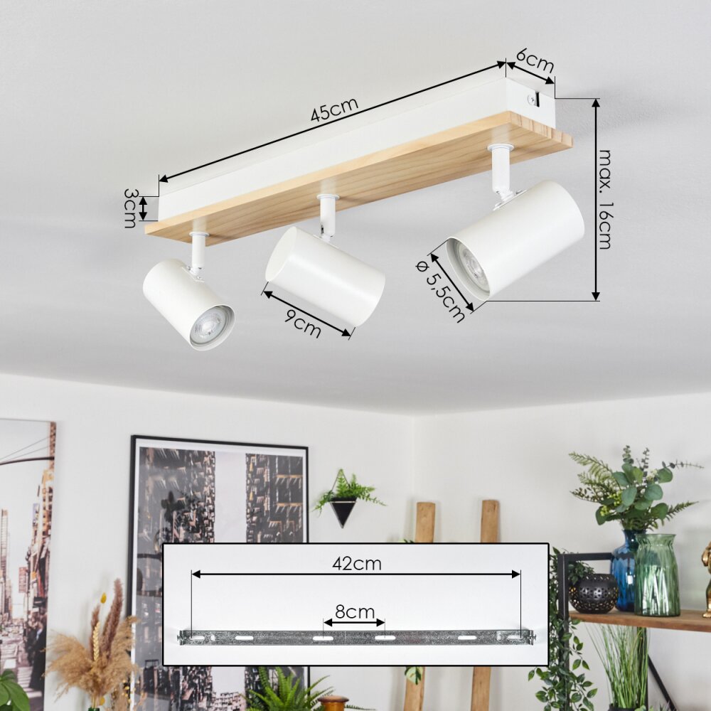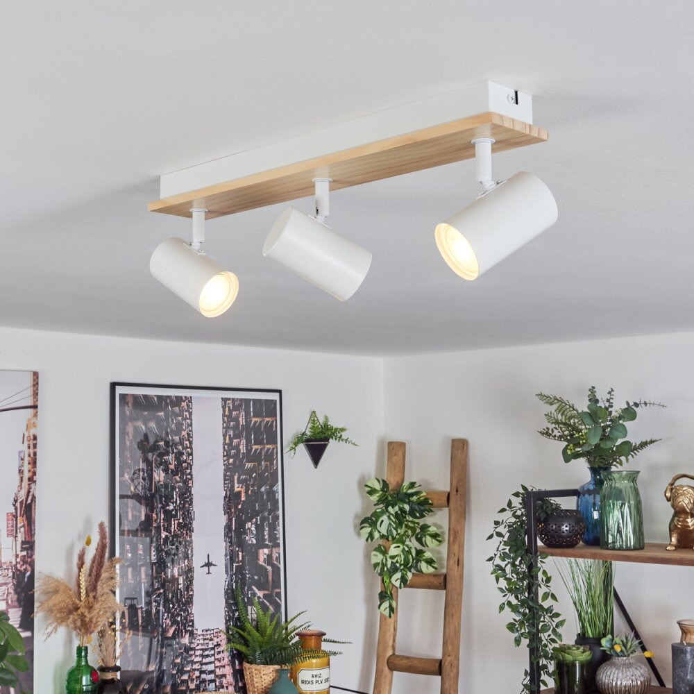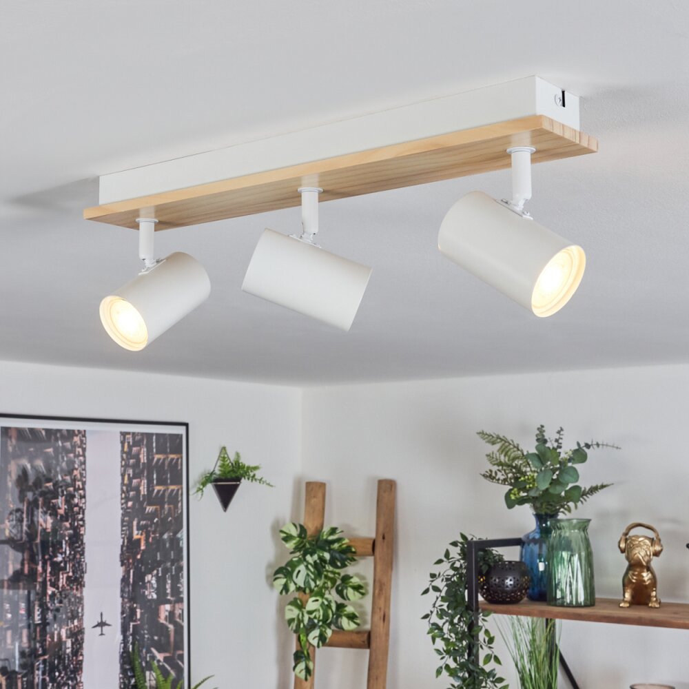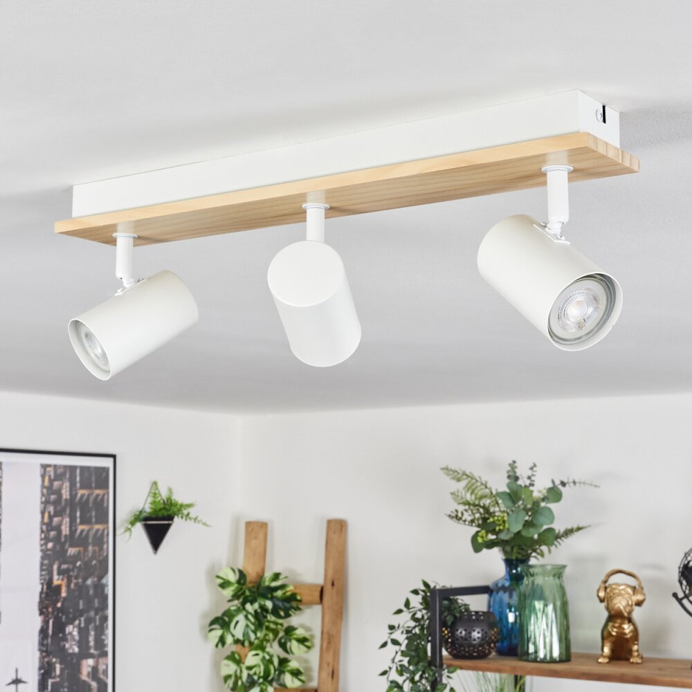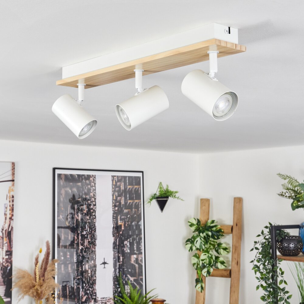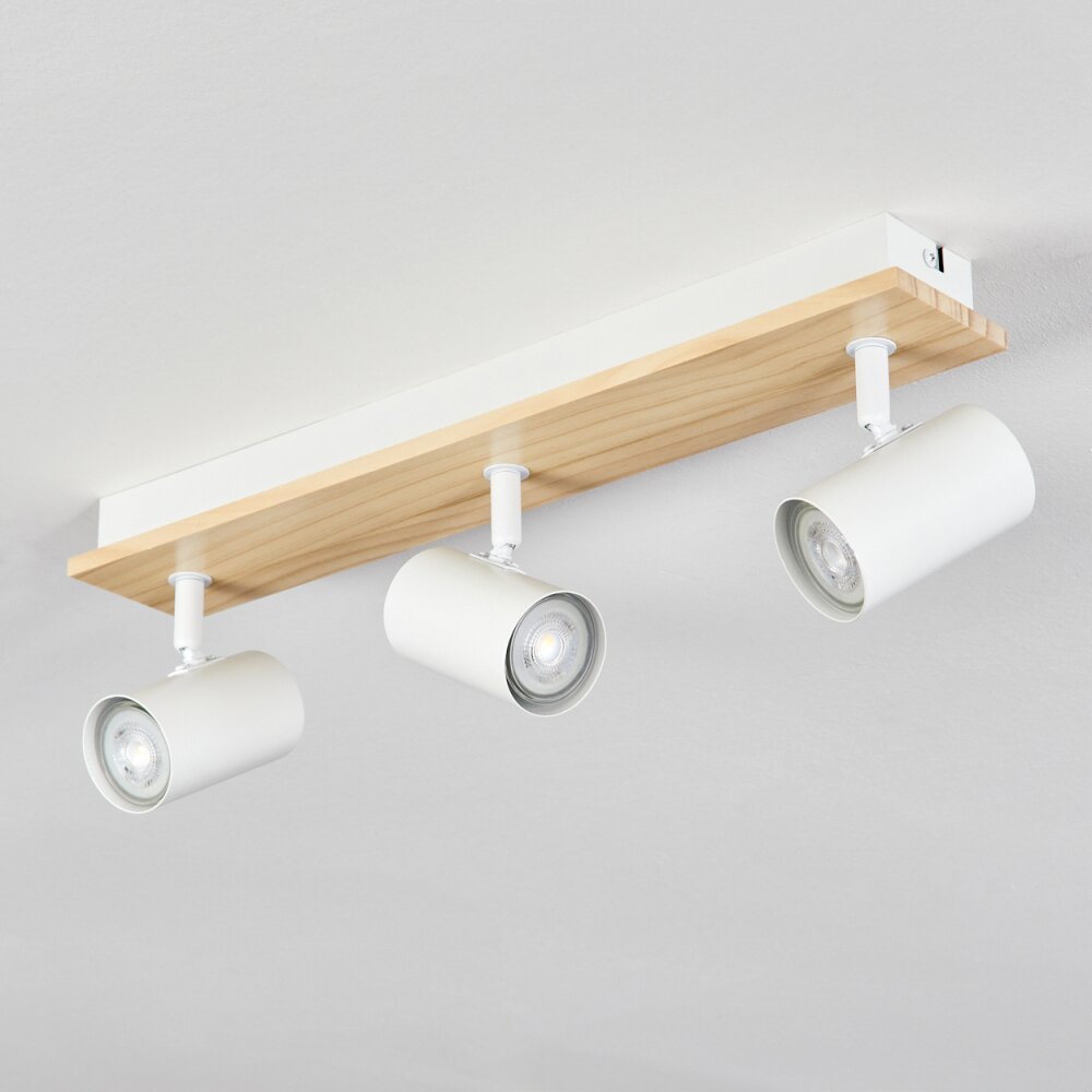 Gesteira Plafondlamp, Plafondspot Hout licht, Wit, 3-lichts