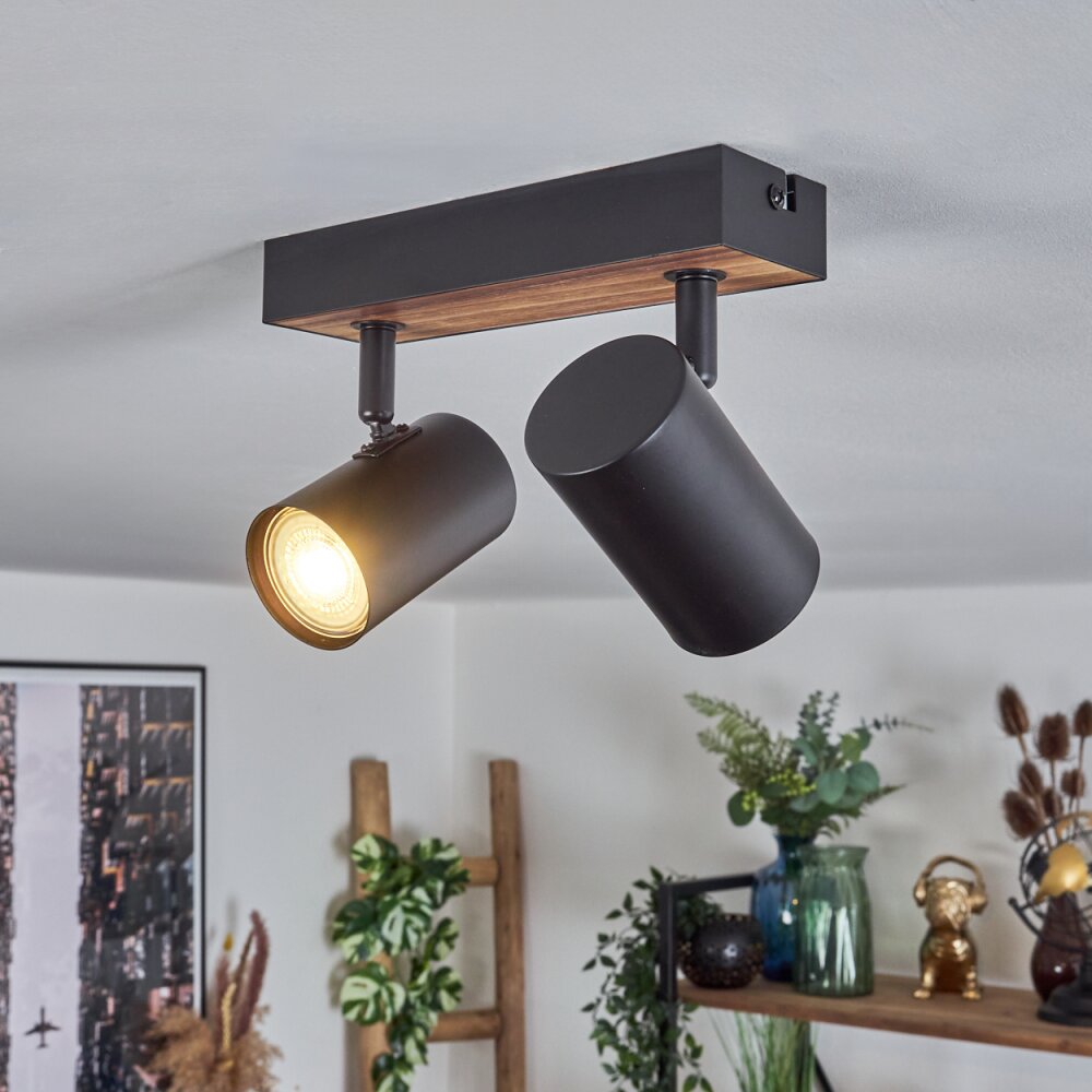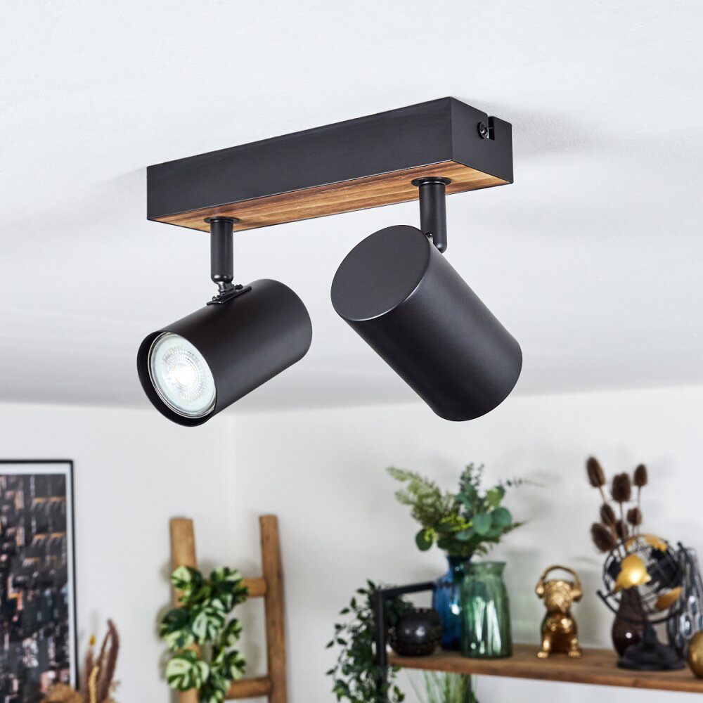 Gesteira Plafondlamp, Plafondspot houtlook, Zwart, 2-lichts