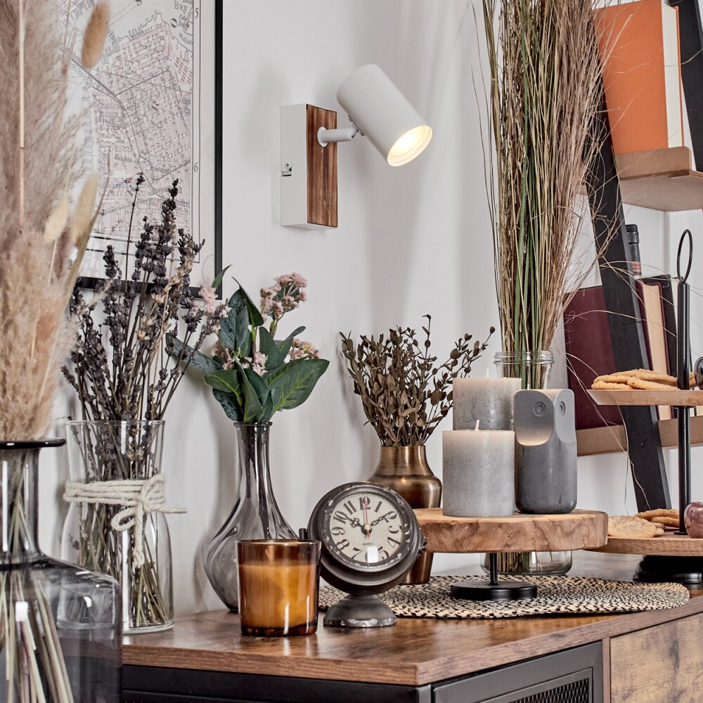 Gesteira Wandlamp, Muurspot houtlook, Wit, 1-licht