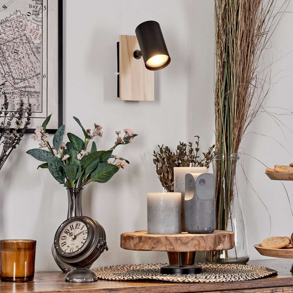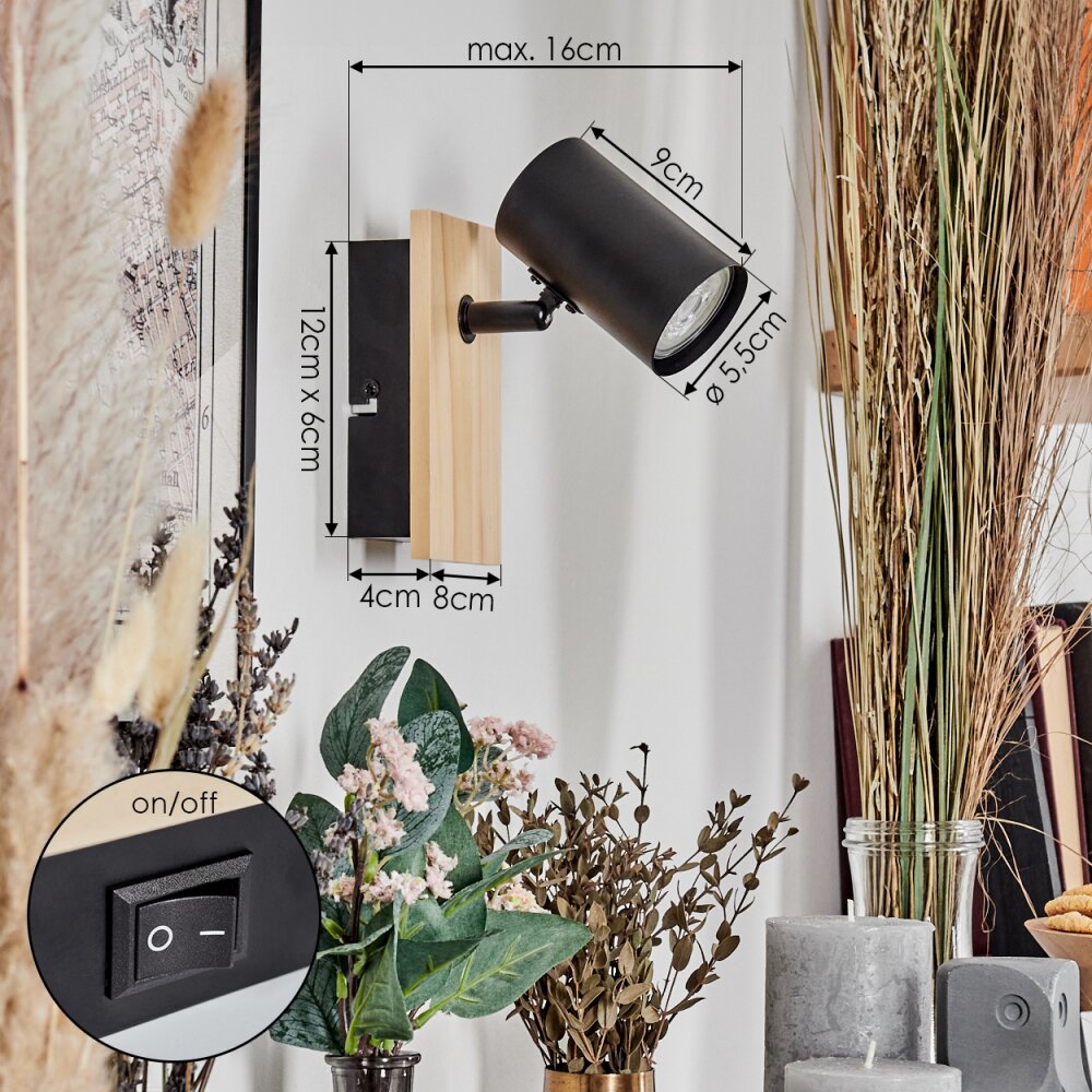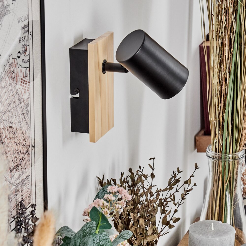 Gesteira Wandlamp, Muurspot Natuurlijke kleuren, Zwart, 1-licht