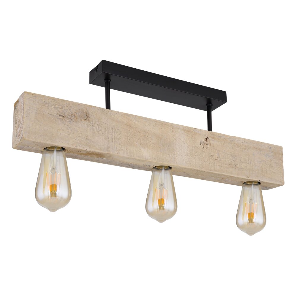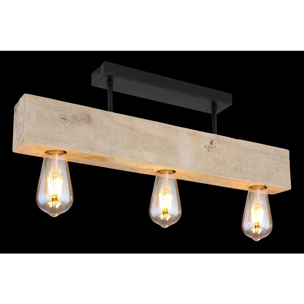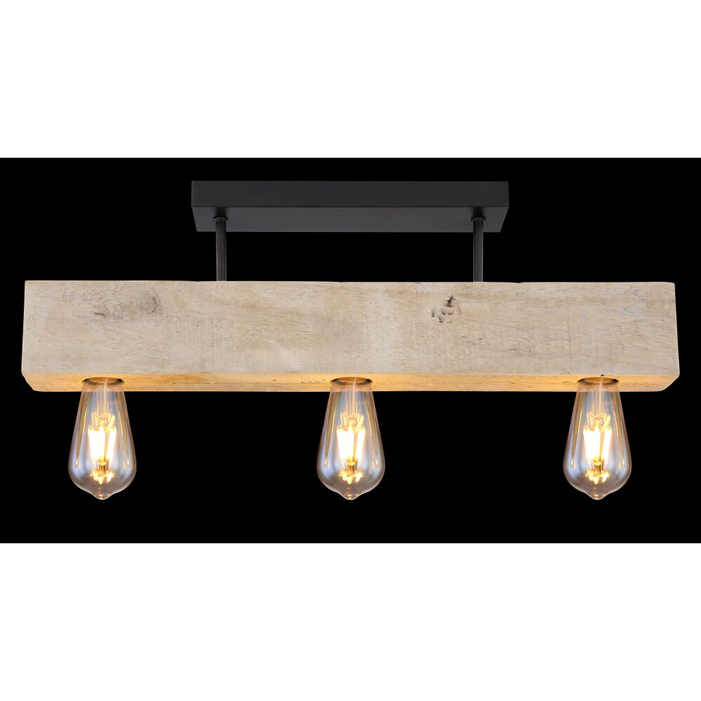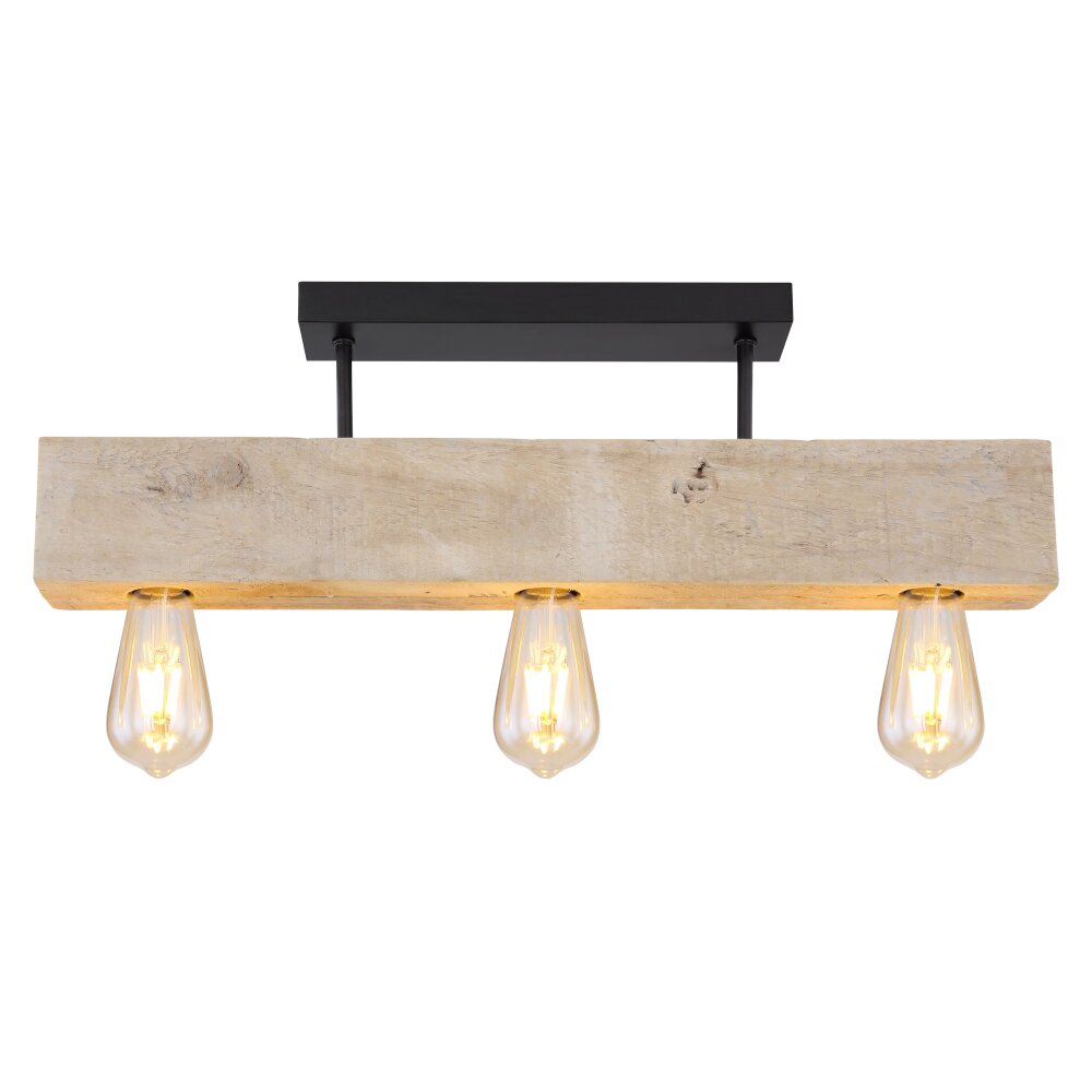Globo ADALIE Plafondlamp Hout licht, Zwart, 3-lichts