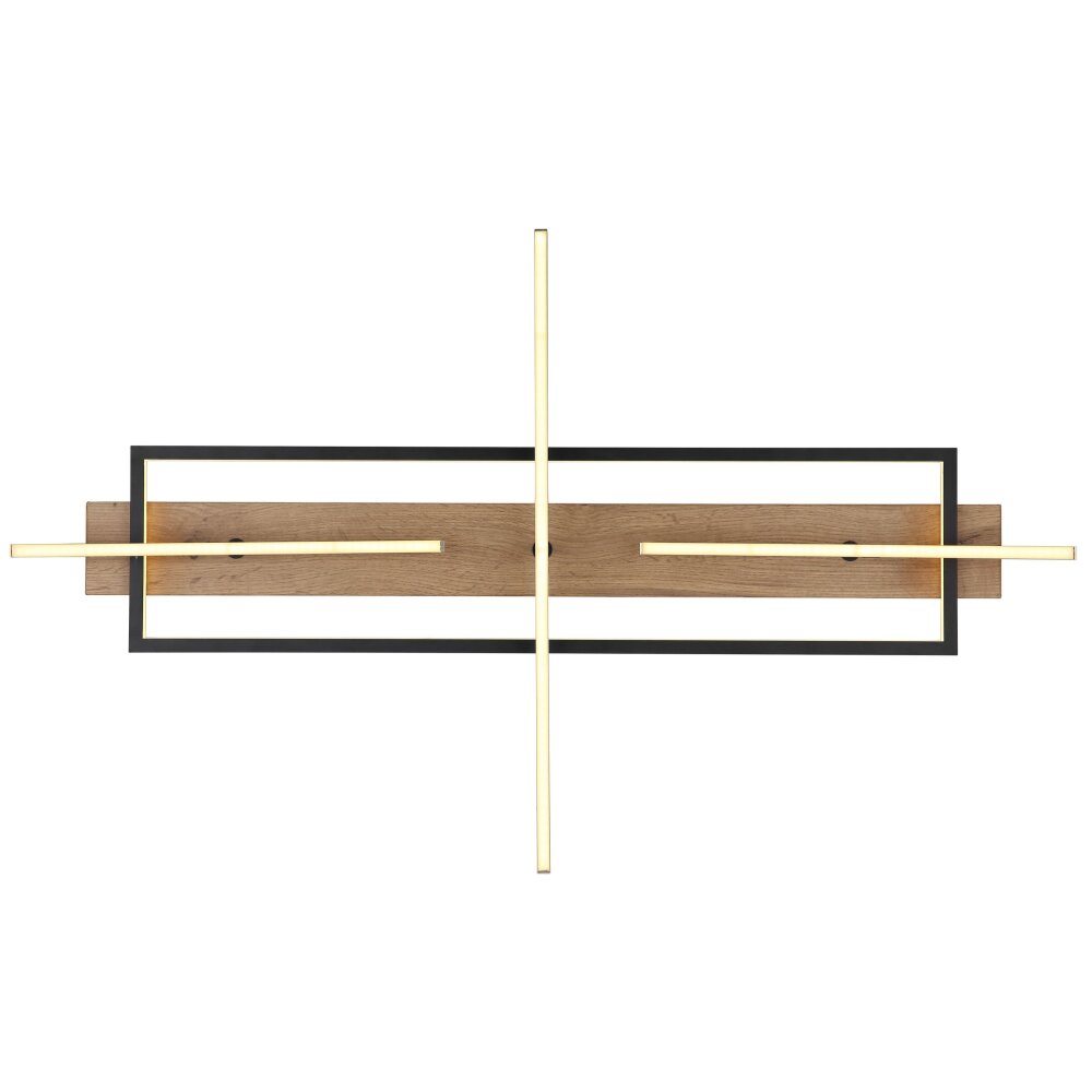 Globo BEATRIX Plafondlamp LED houtlook, Zwart, 2-lichts