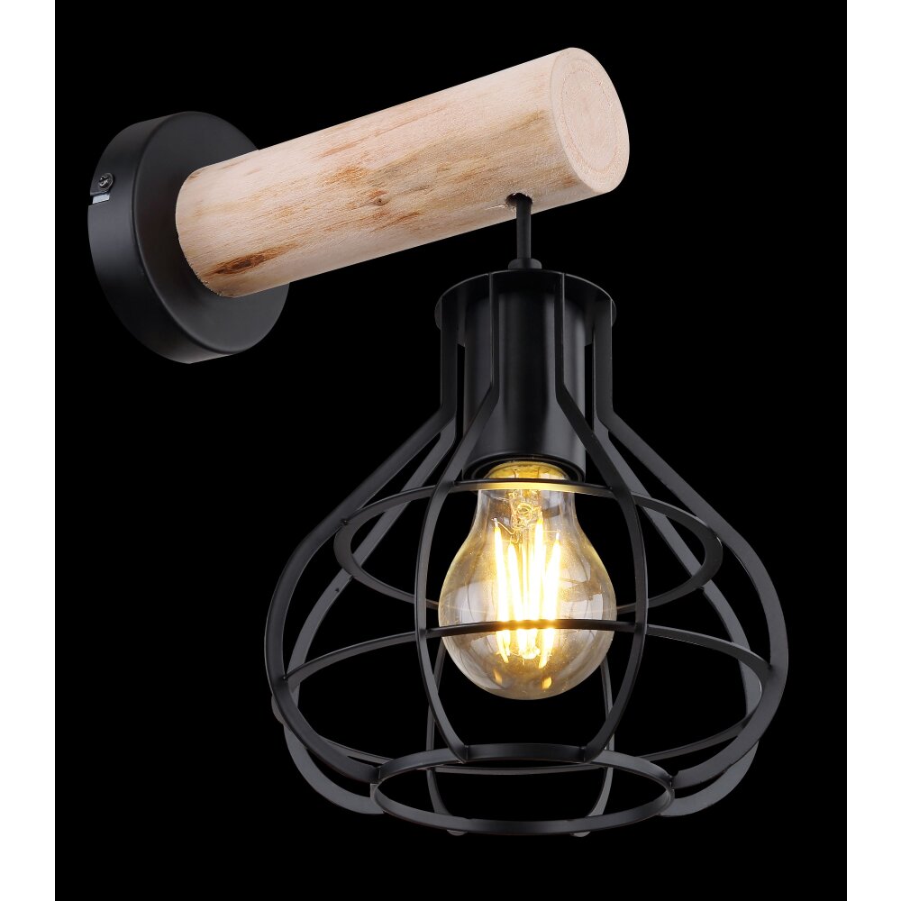 Globo CLASTRA Muurlamp Hout licht, Zwart, 1-licht