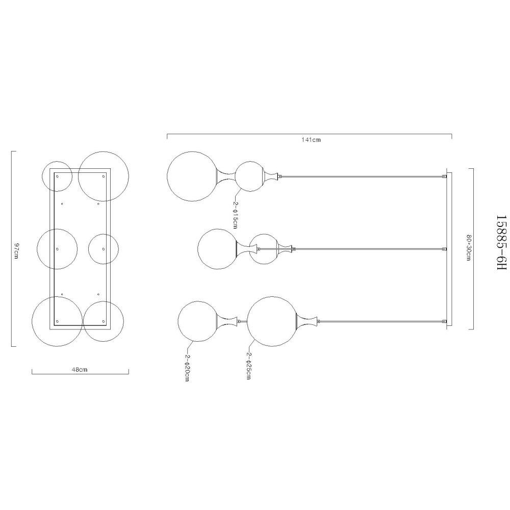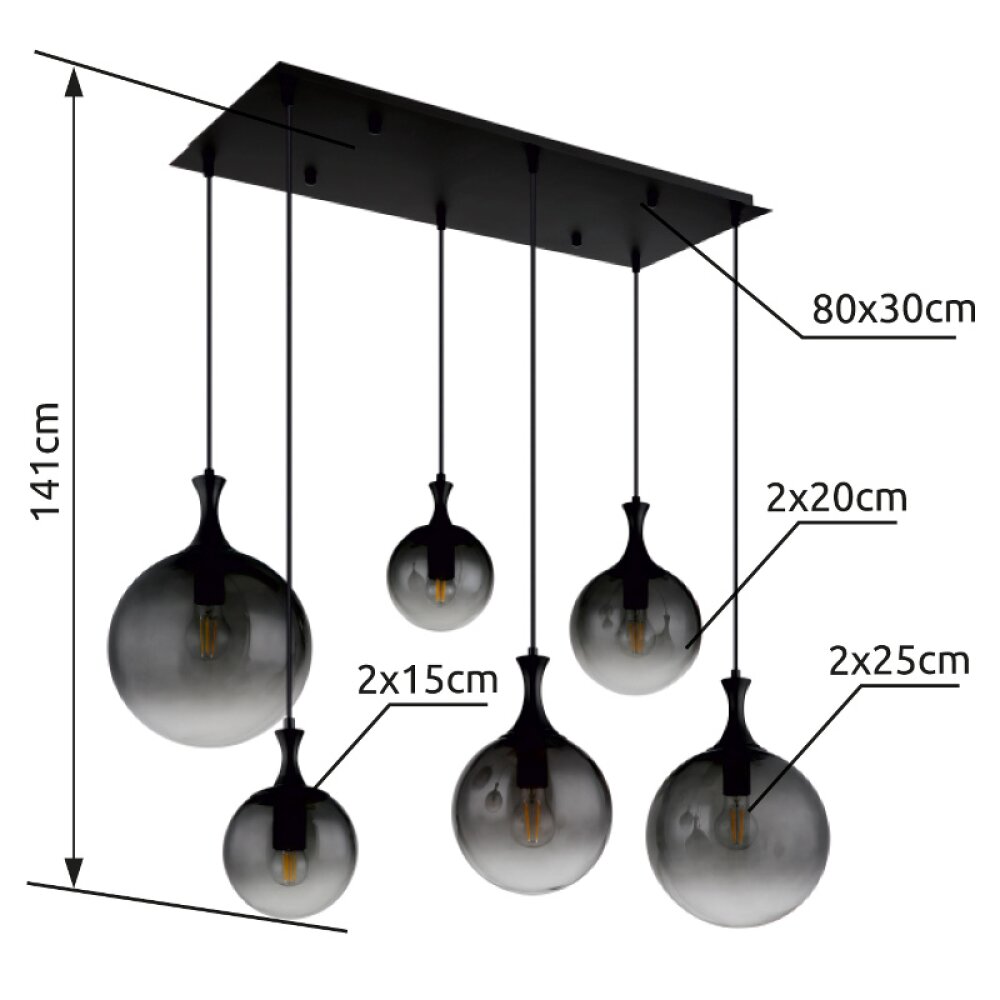 Globo Dalton Hanglamp Zwart, 6-lichts
