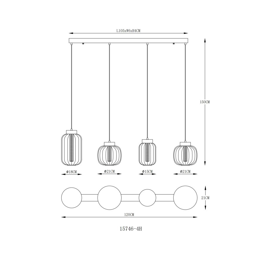 Globo Fluoro Hanglamp LED Zwart, 1-licht
