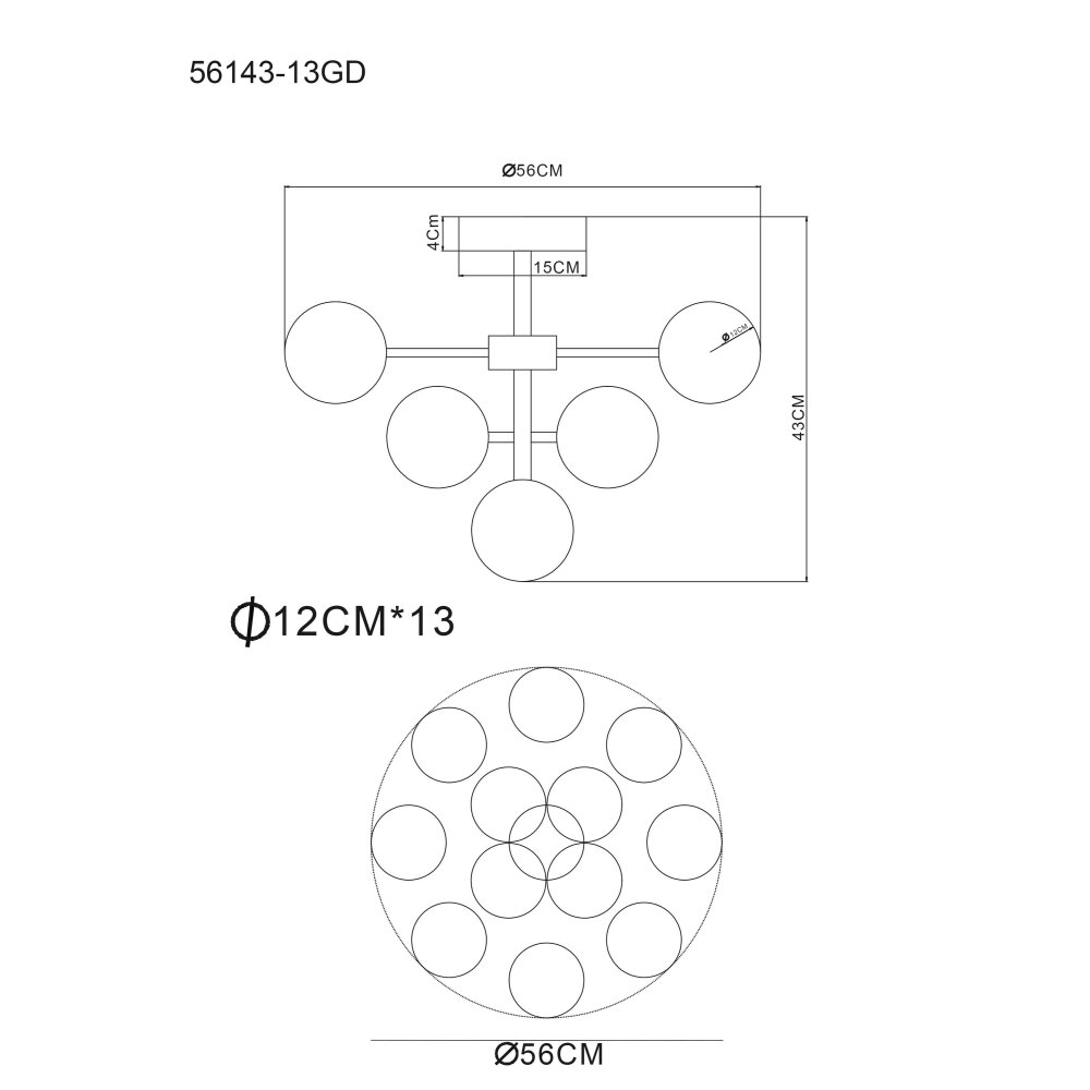 Globo Grappy Plafondlamp Goud, 13-lichts