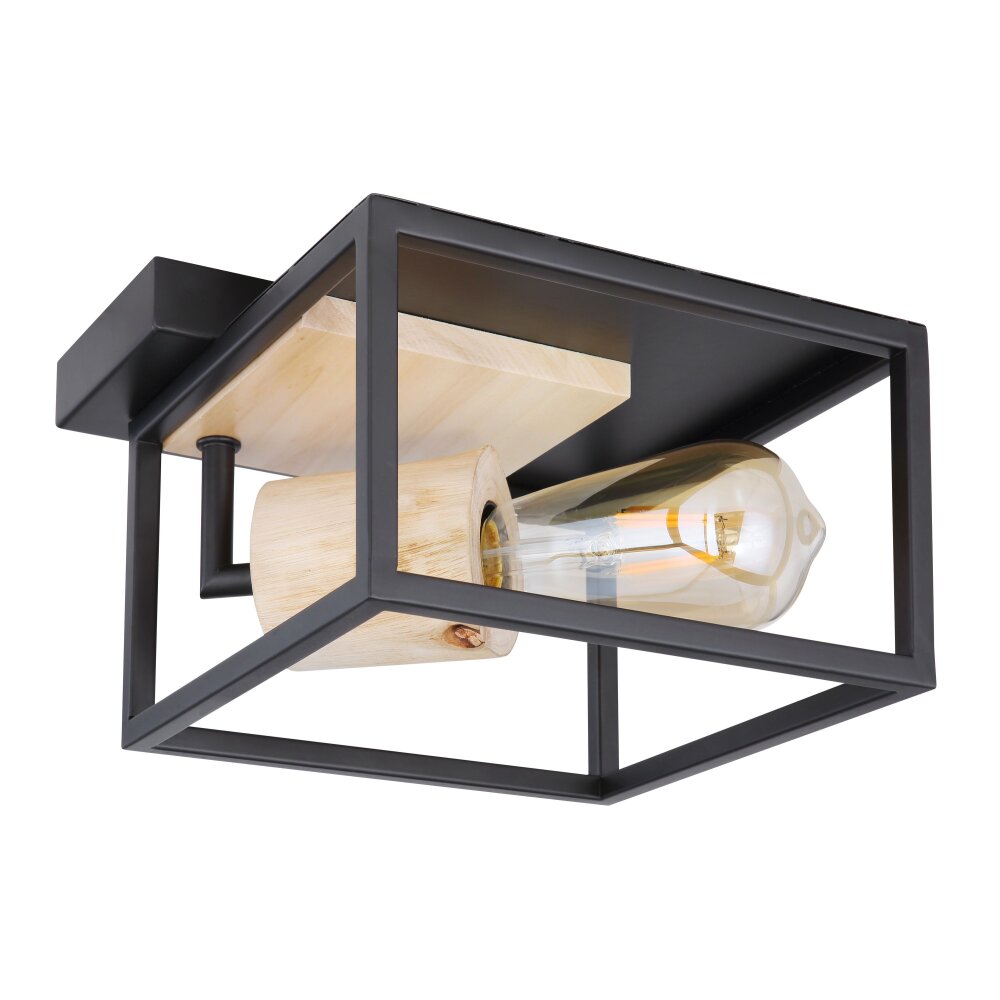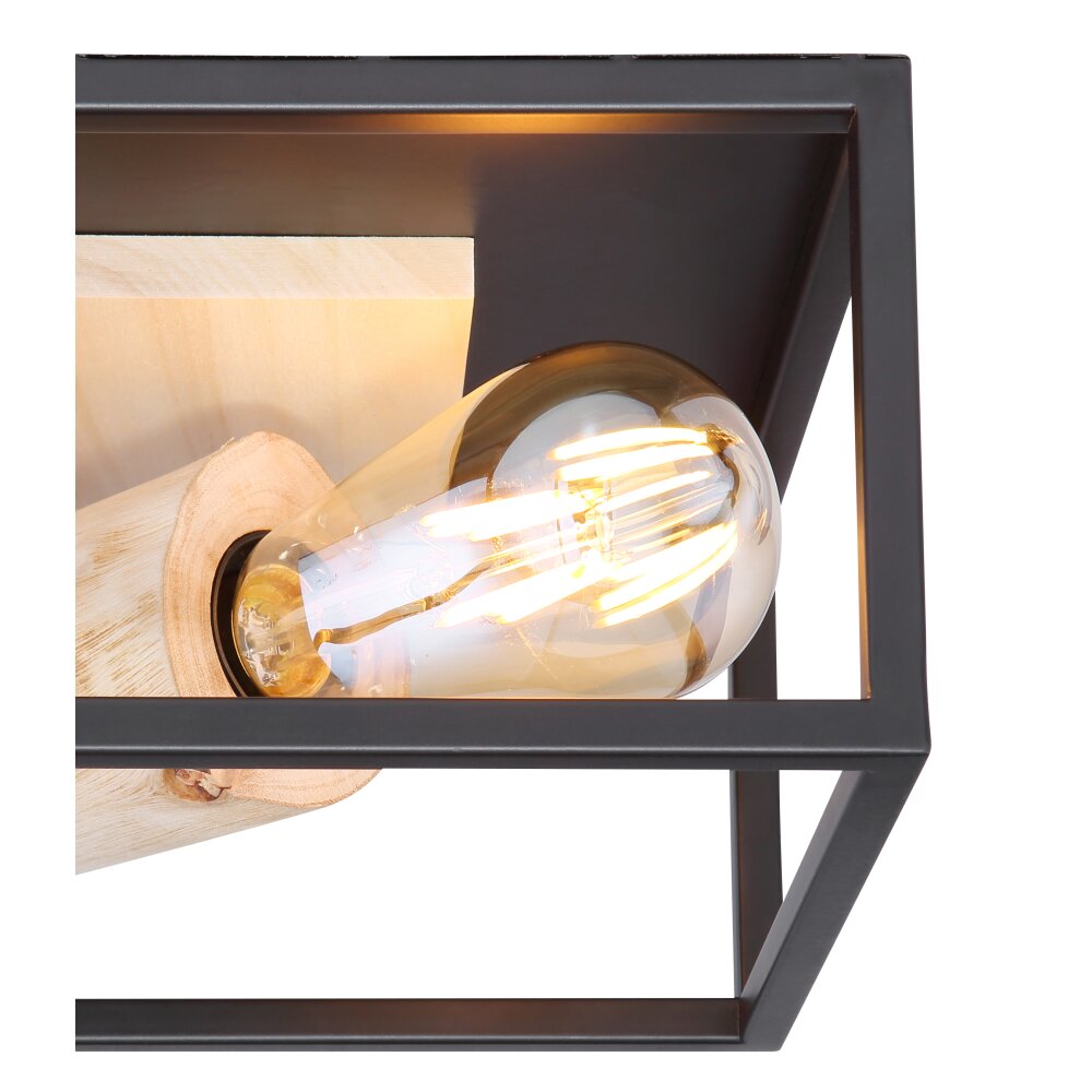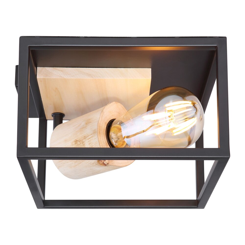 Globo HAGAR Plafondlamp Hout licht, Zwart, 1-licht