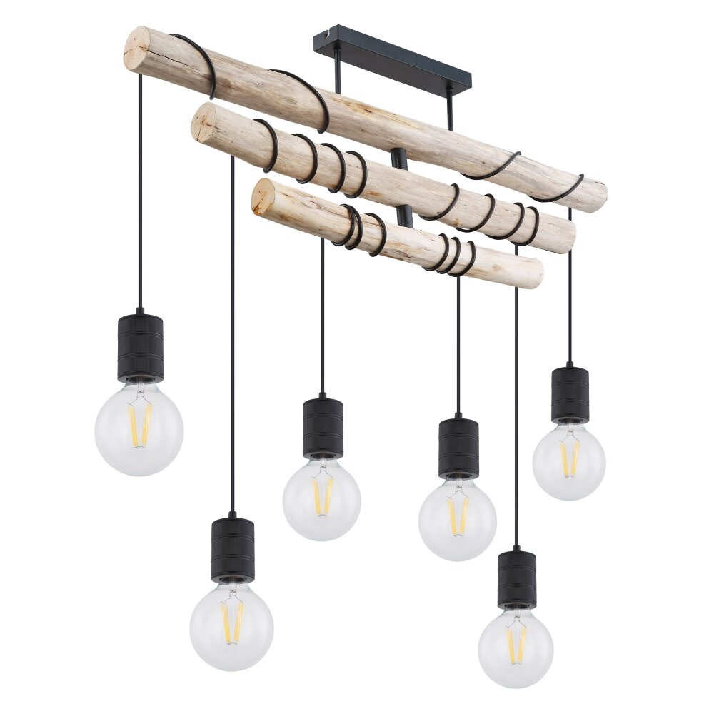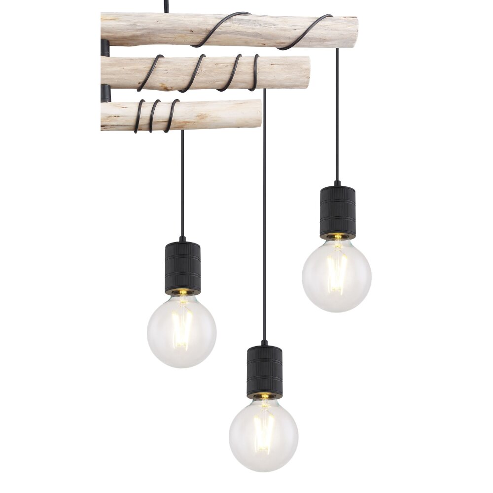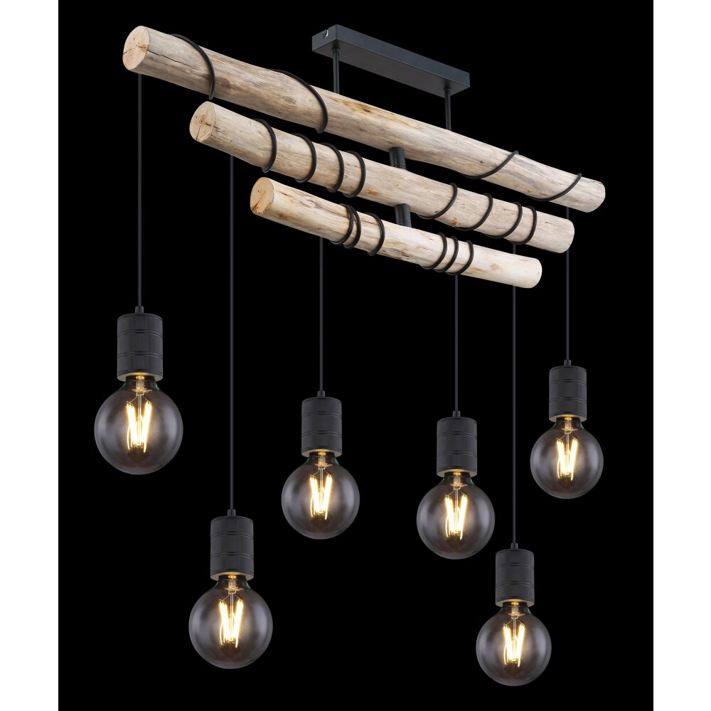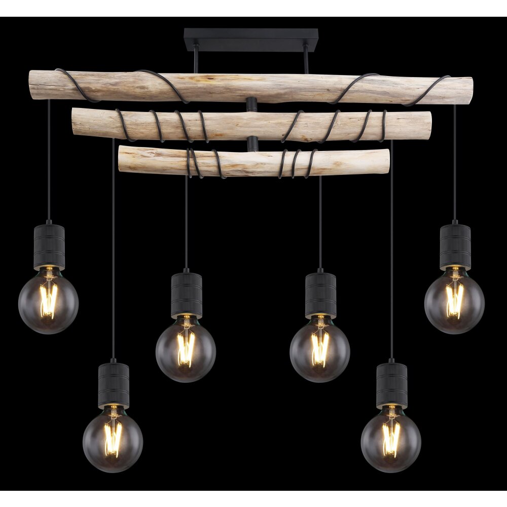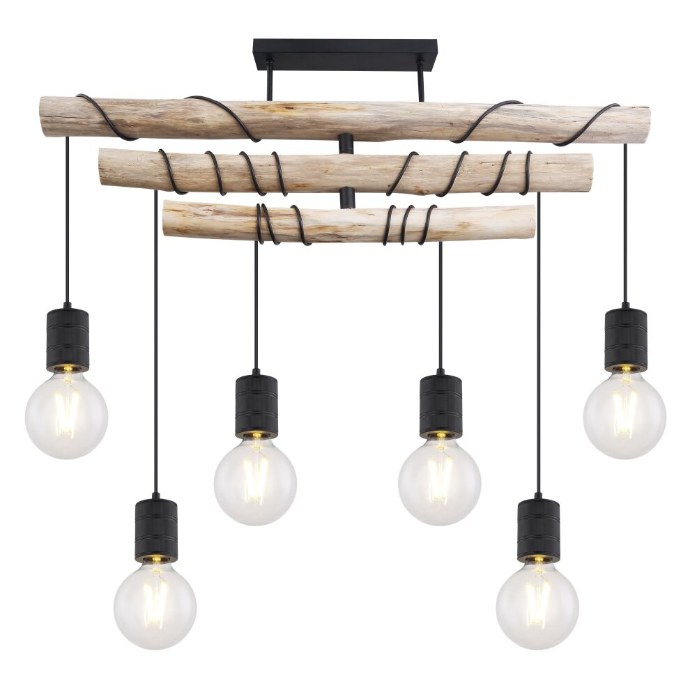Globo HERMINE Plafondlamp Hout licht, Zwart, 6-lichts