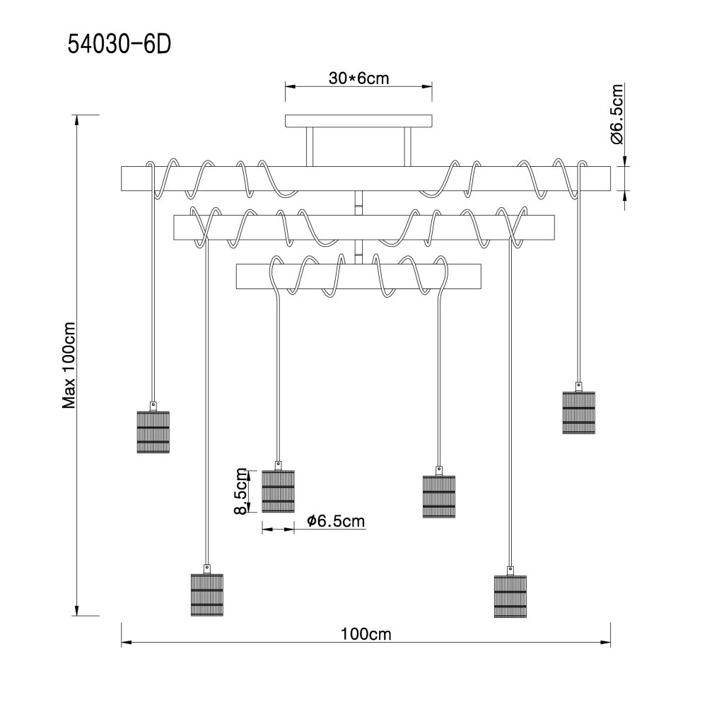 Safari Plafondlamp Natuurlijke kleuren, Zwart, 6-lichts