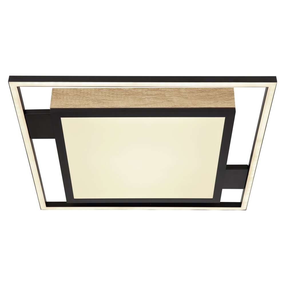 Globo JORRY Plafondlamp LED houtlook, Zwart, 1-licht, Afstandsbediening