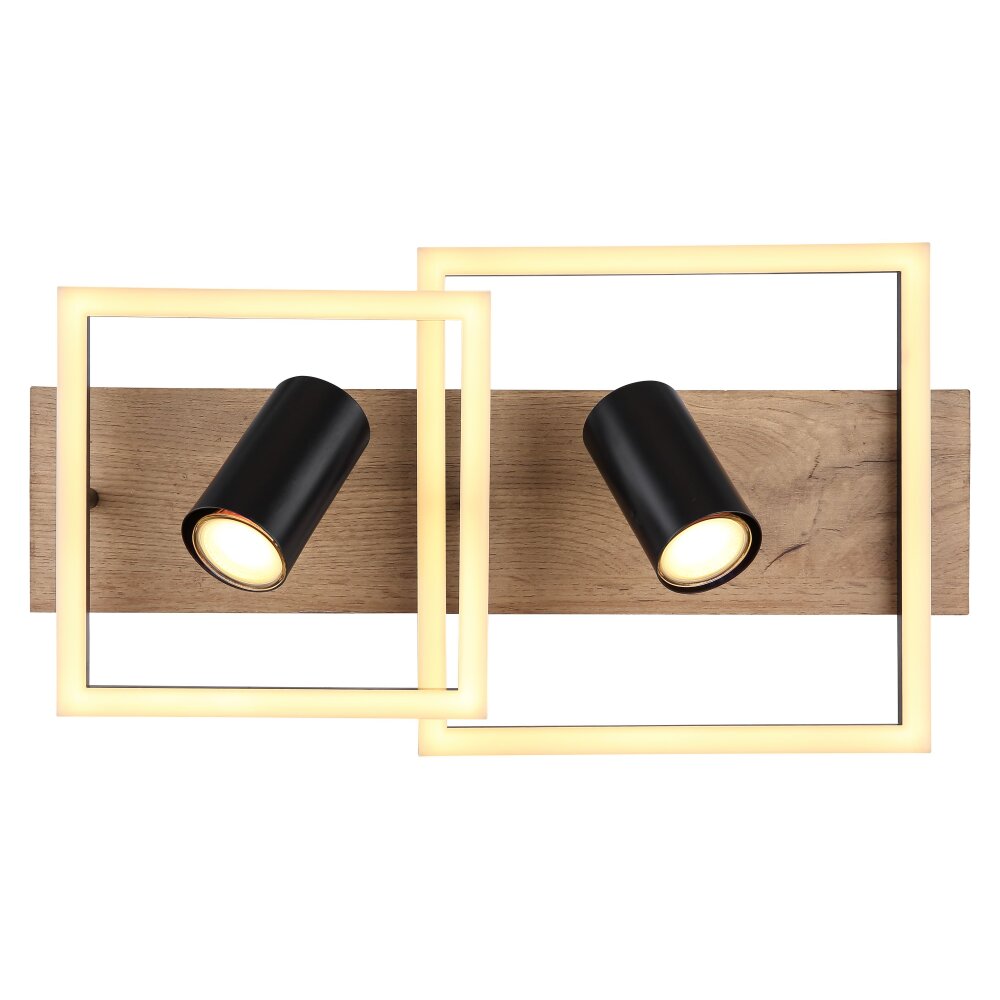 Globo KASSU Plafondlamp LED houtlook, Zwart, Wit, 2-lichts