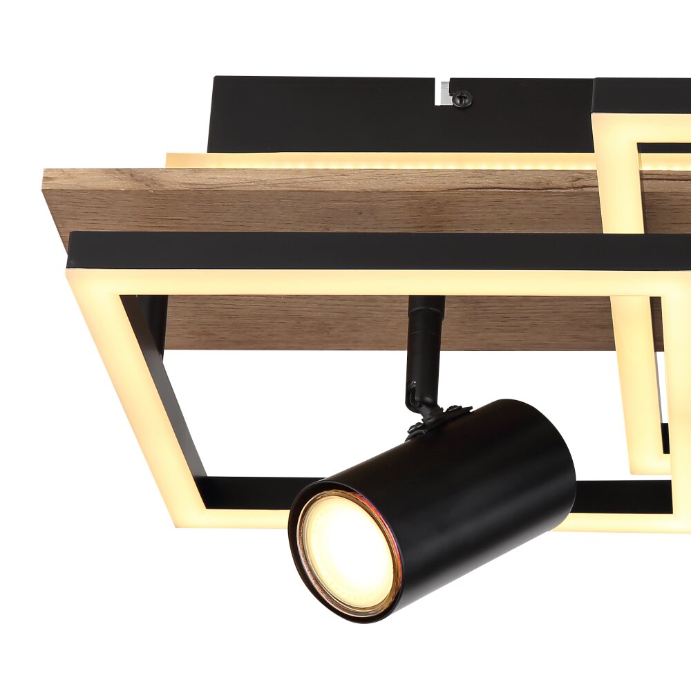 Macos Plafondlamp, Plafondspot LED Bruin, houtlook, Zwart, 1-licht