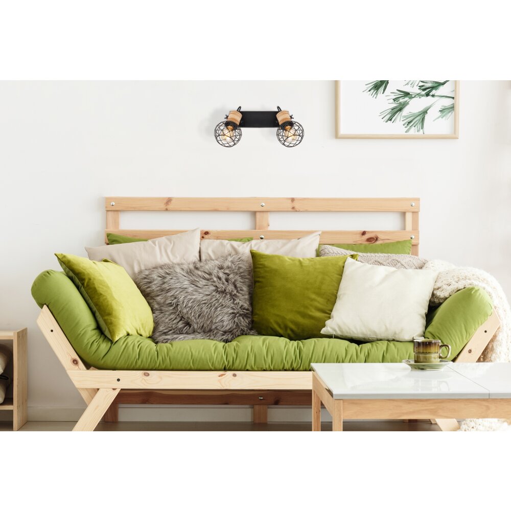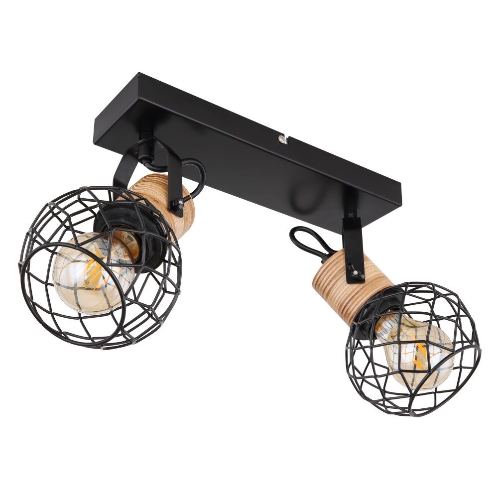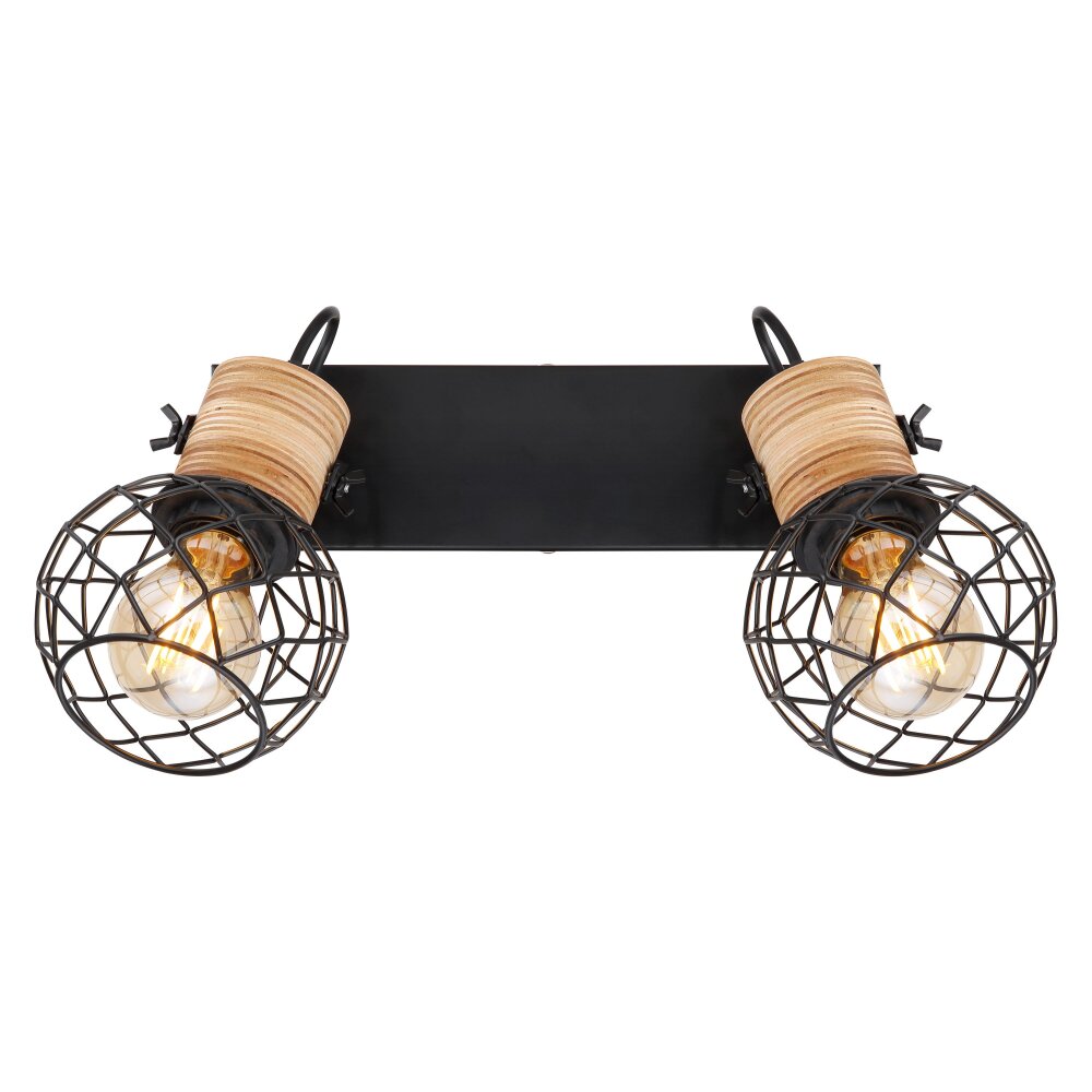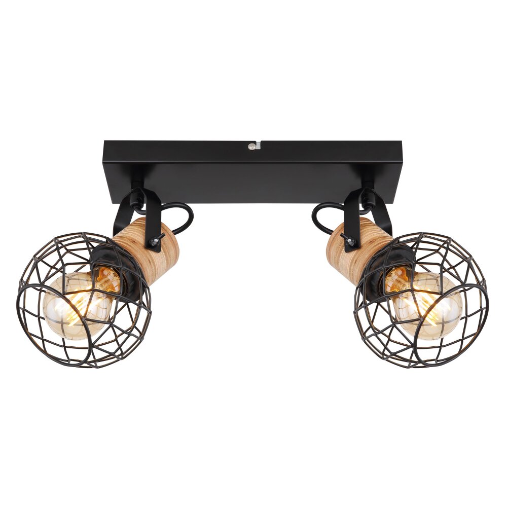 Globo LACKY Plafondlamp Hout licht, Zwart, 2-lichts