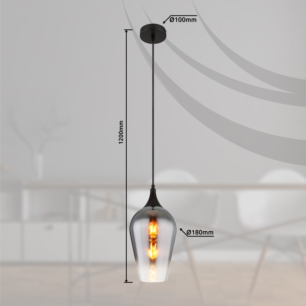 Globo Lavus Hanglamp Zwart, 1-licht