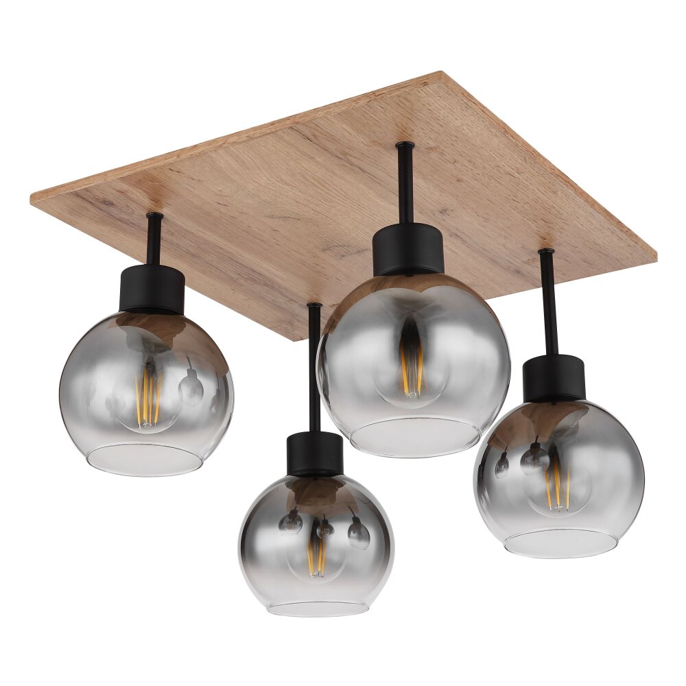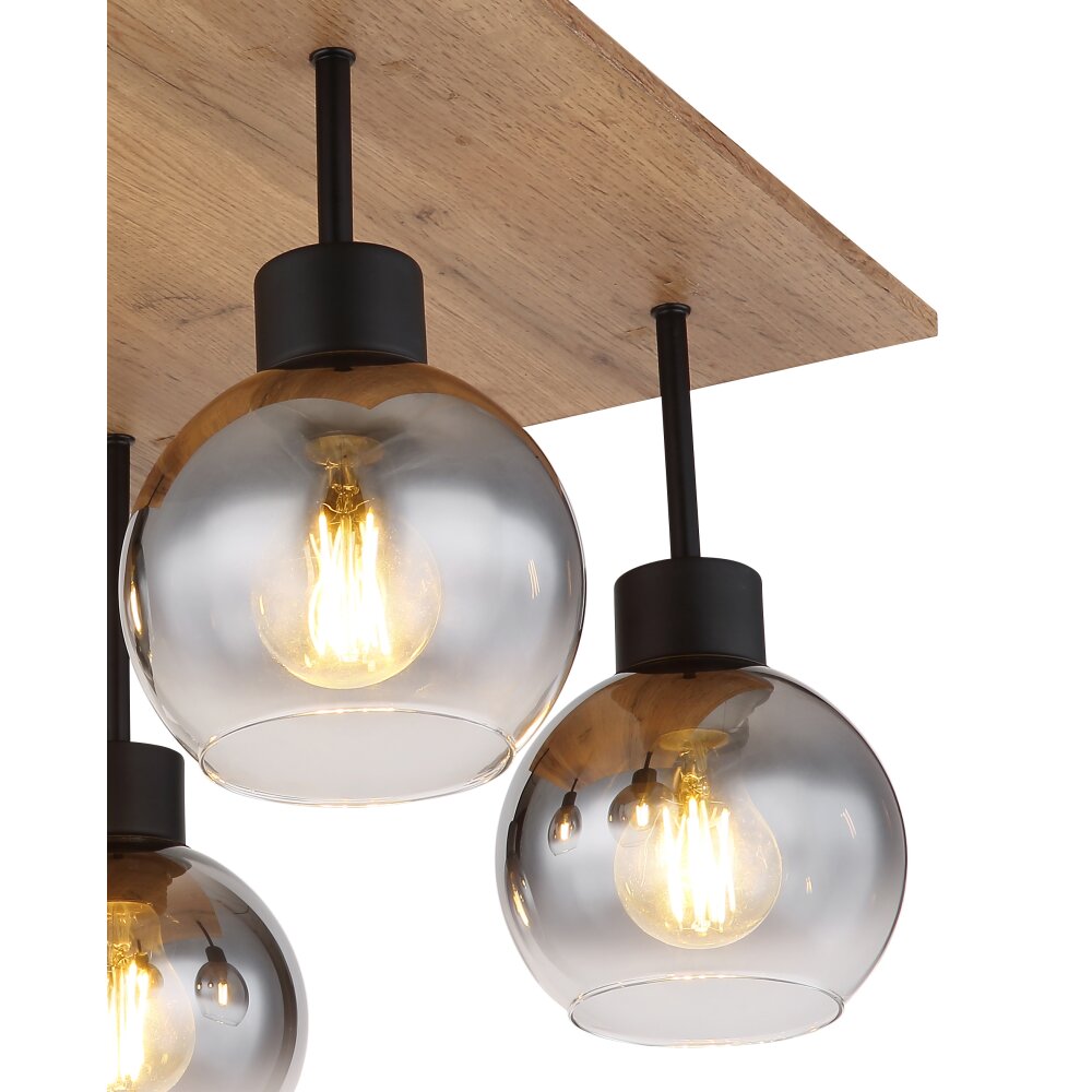 Globo MOITAS Plafondlamp houtlook, Zwart, 4-lichts