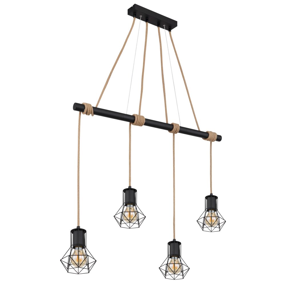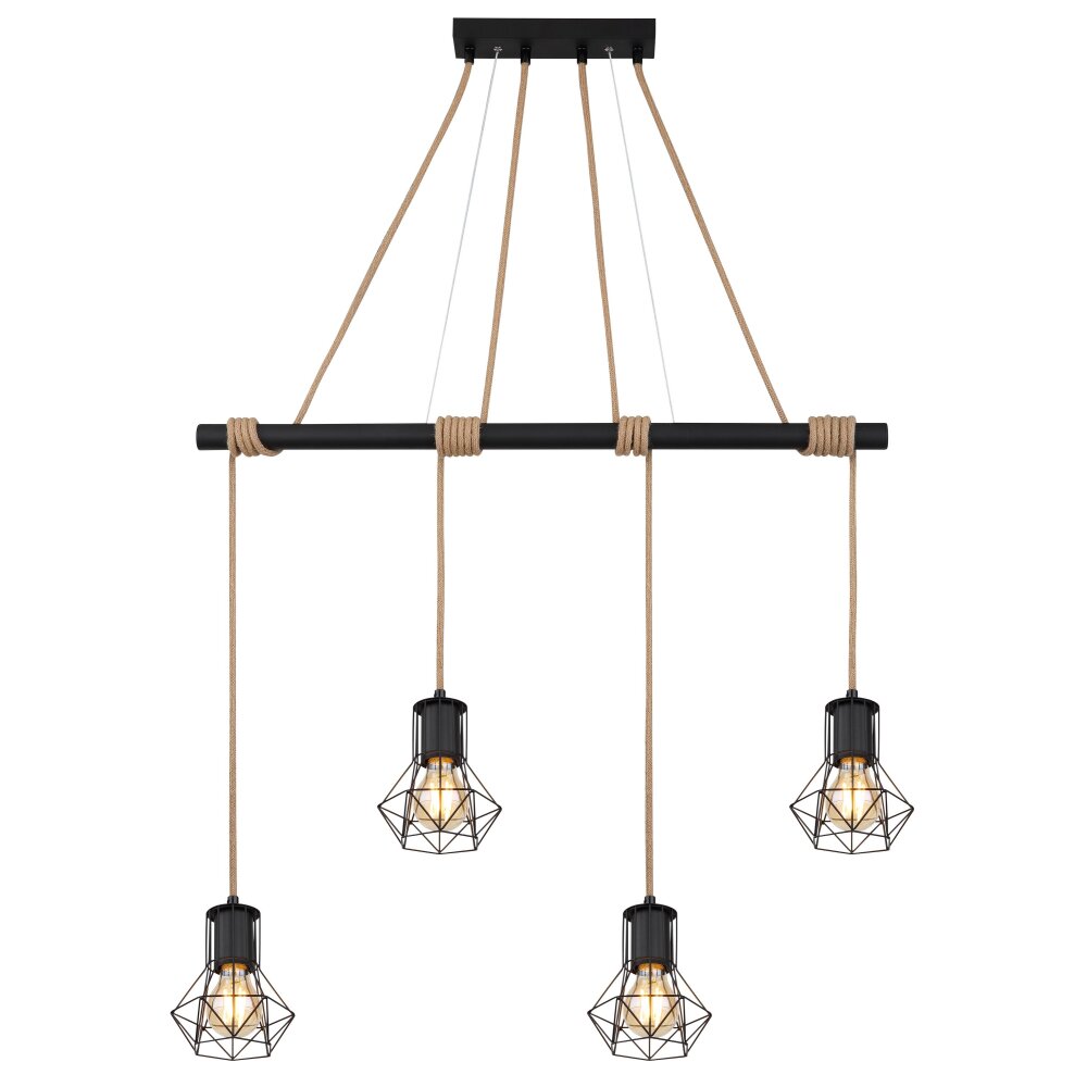 Globo PRISKA Hanglamp Natuurlijke kleuren, Zwart, 4-lichts