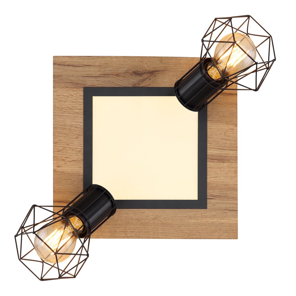Globo PRISKA Plafondlamp houtlook, Zwart, Wit, 3-lichts