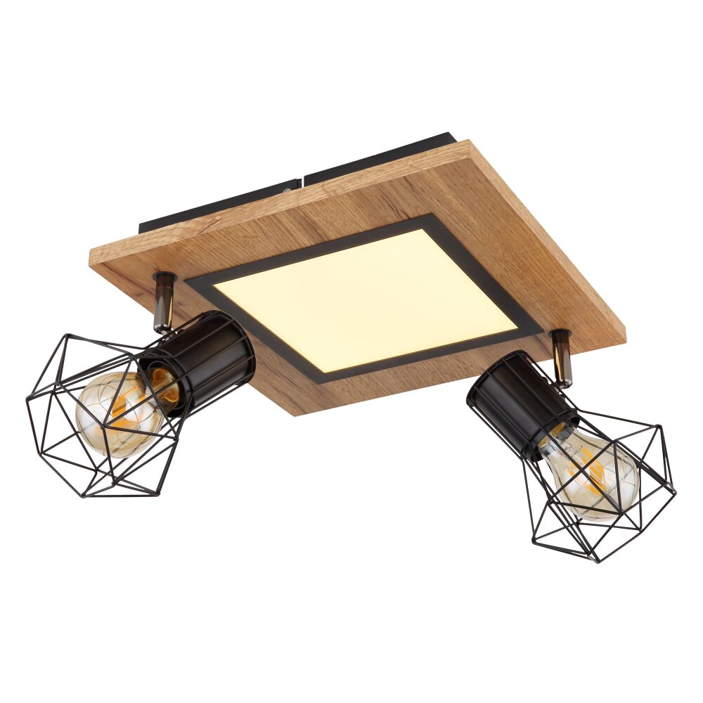 Alsen Plafondlamp Hout donker, Zwart, 4-lichts