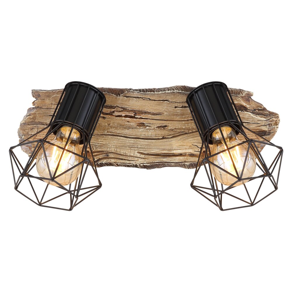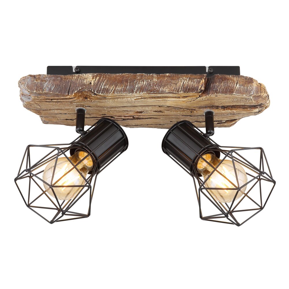 Globo PRISKA Plafondlamp houtlook, Zwart, 2-lichts