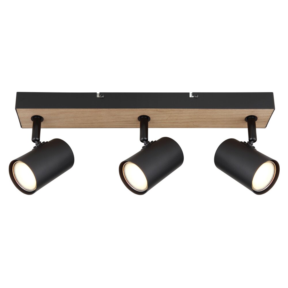 Globo ROBBY Plafondlamp houtlook, Zwart, 3-lichts