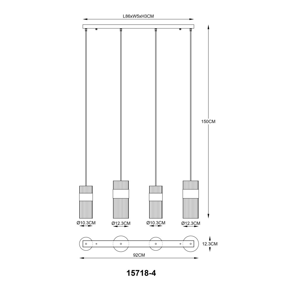 Globo Scarfina Hanglamp Zwart, 4-lichts