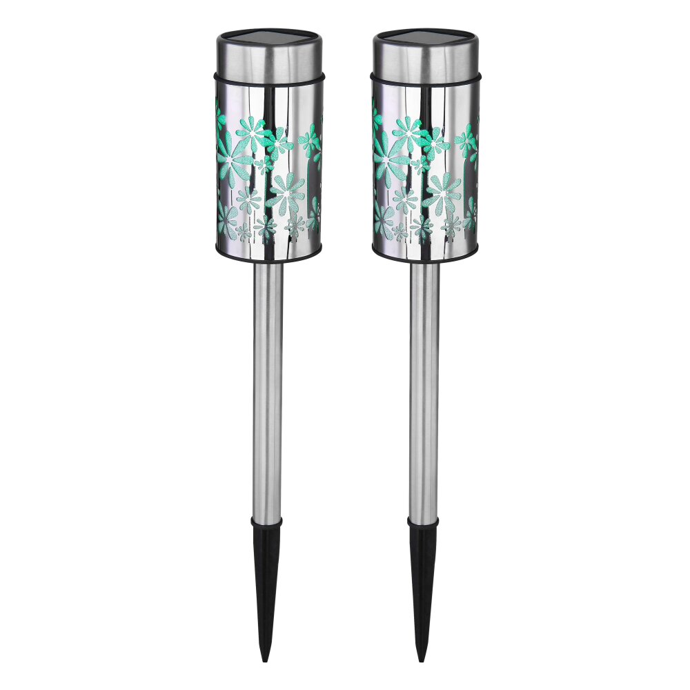 Globo Solarlamp LED roestvrij staal, 2-lichts, Kleurwisselaar
