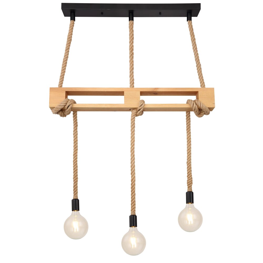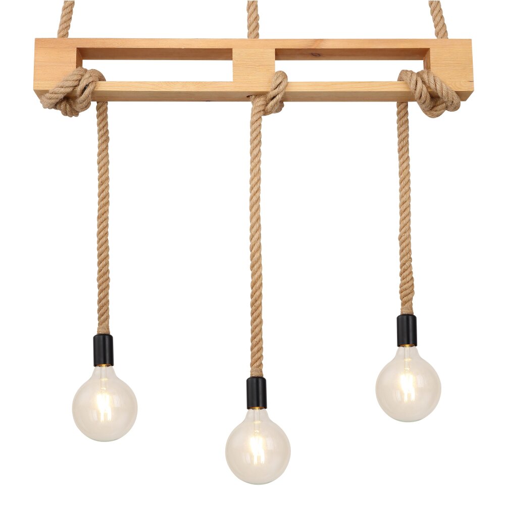 Taheramo Hanglamp Hout licht, Zwart, 3-lichts