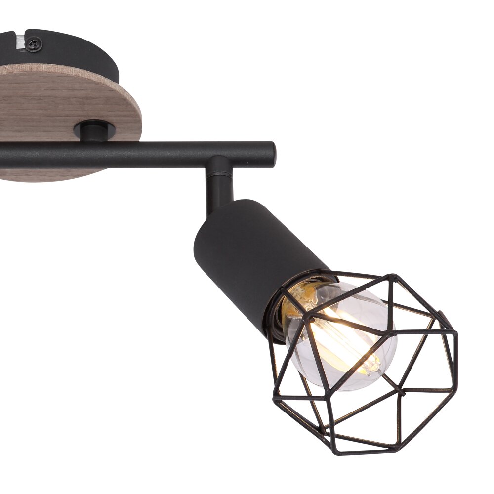 Globo XARA Plafondlamp houtlook, Zwart, 2-lichts