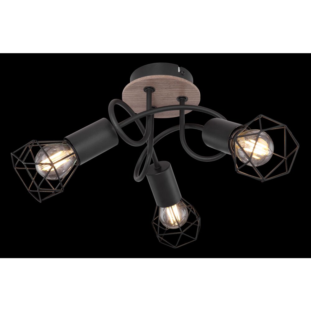 Globo XARA Plafondlamp Hout licht, houtlook, Zwart, 3-lichts