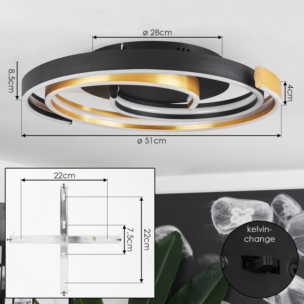 Golega Plafondlamp LED Messing, Zwart, 1-licht
