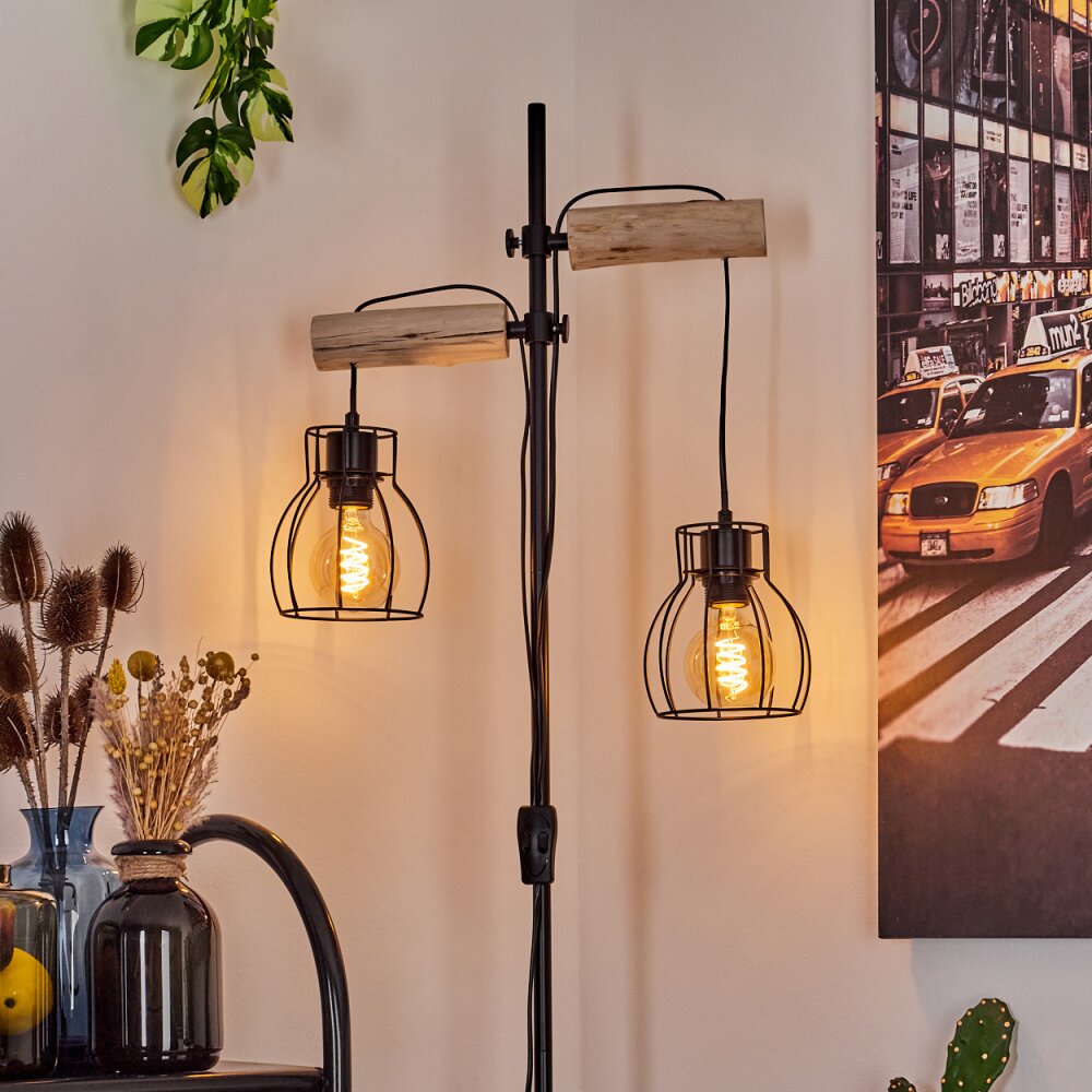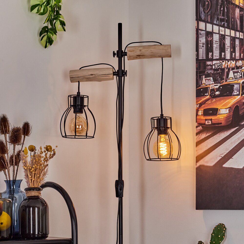 Gondo Staande lamp Hout licht, Zwart, 2-lichts