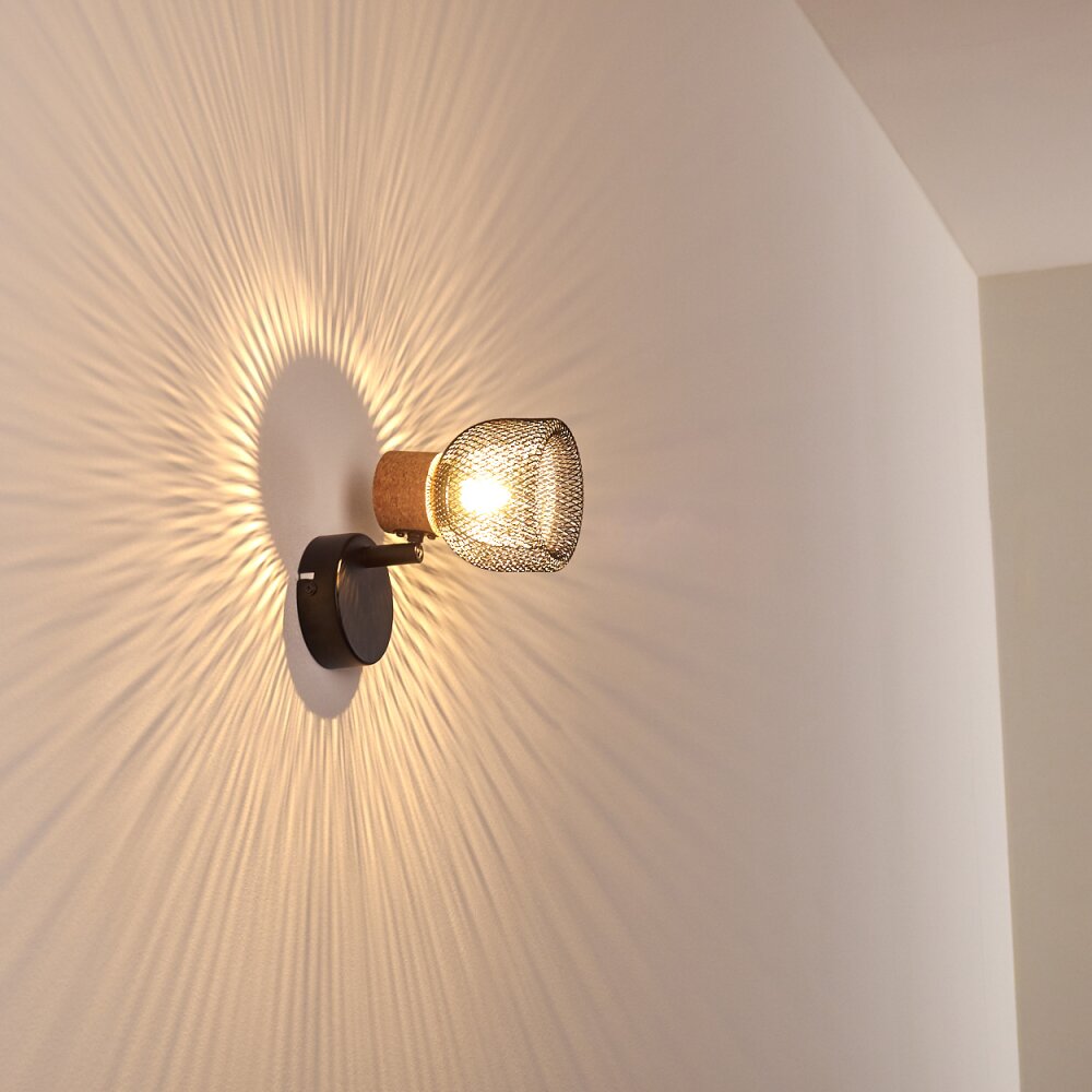 Grongroft Muurlamp Hout licht, Zwart, 1-licht