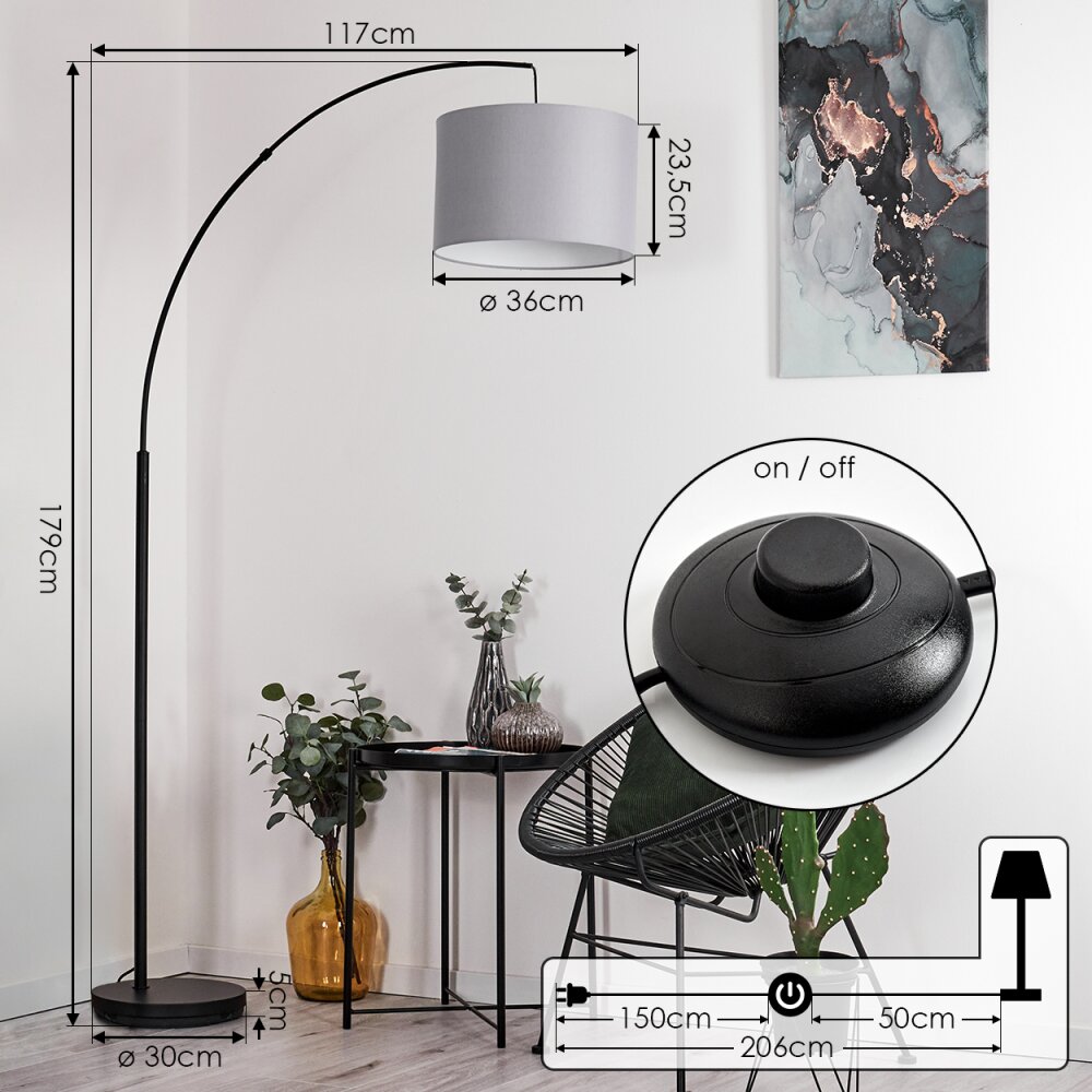 Gualdim Staande lamp Zwart, 1-licht, Stoffen kap