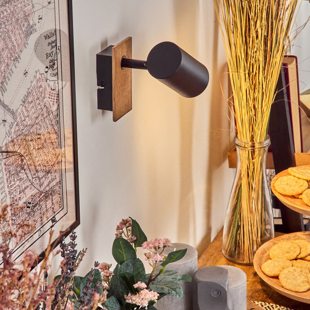 Guardais Wandlamp, Muurspot Bruin, houtlook, Zwart, 1-licht