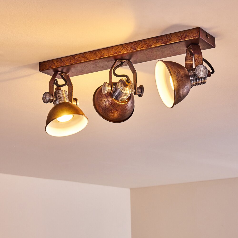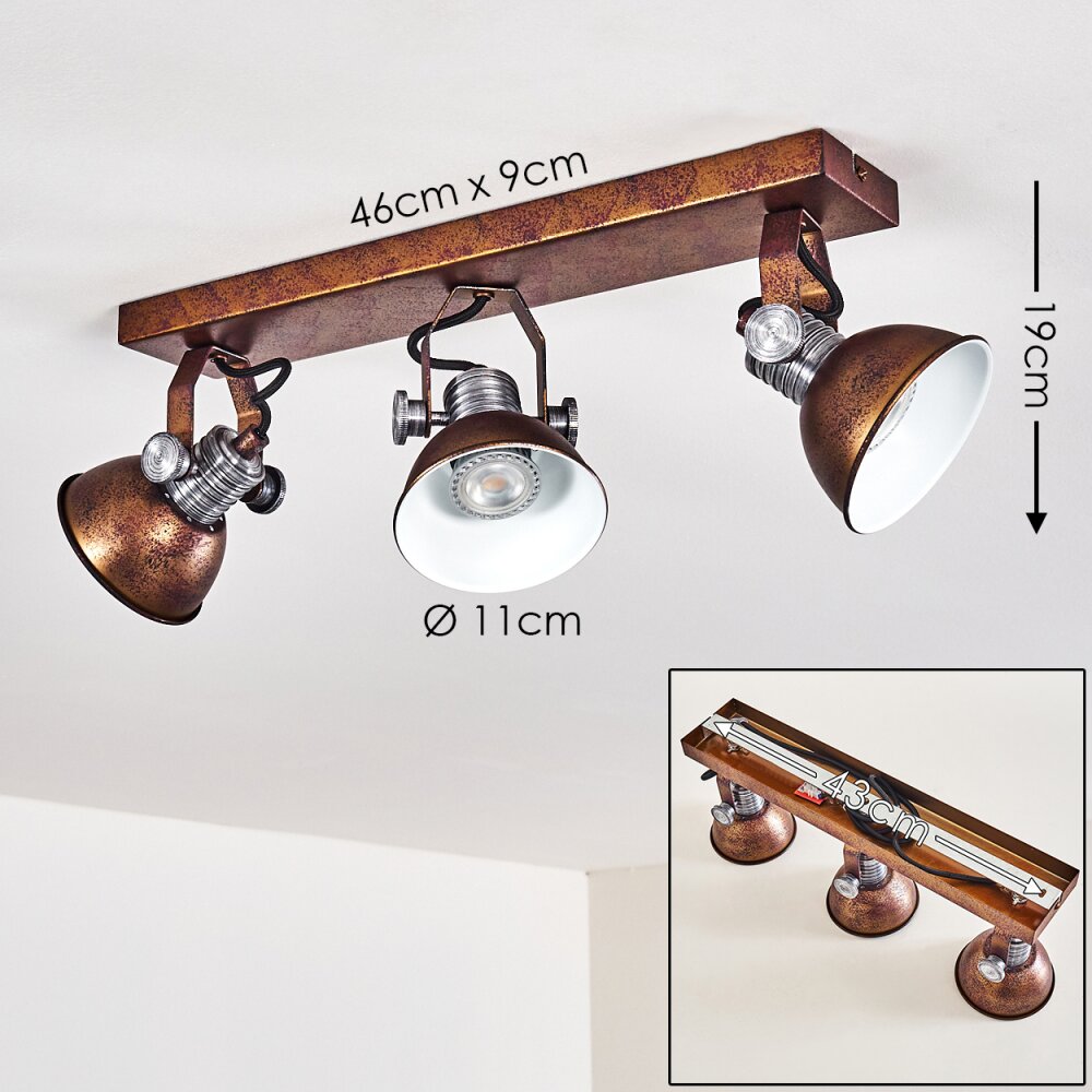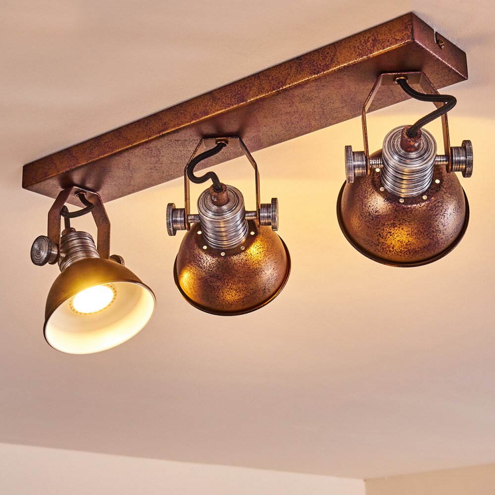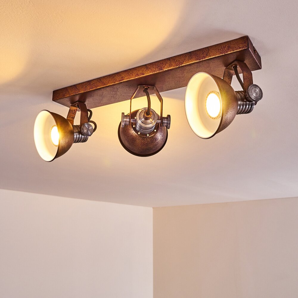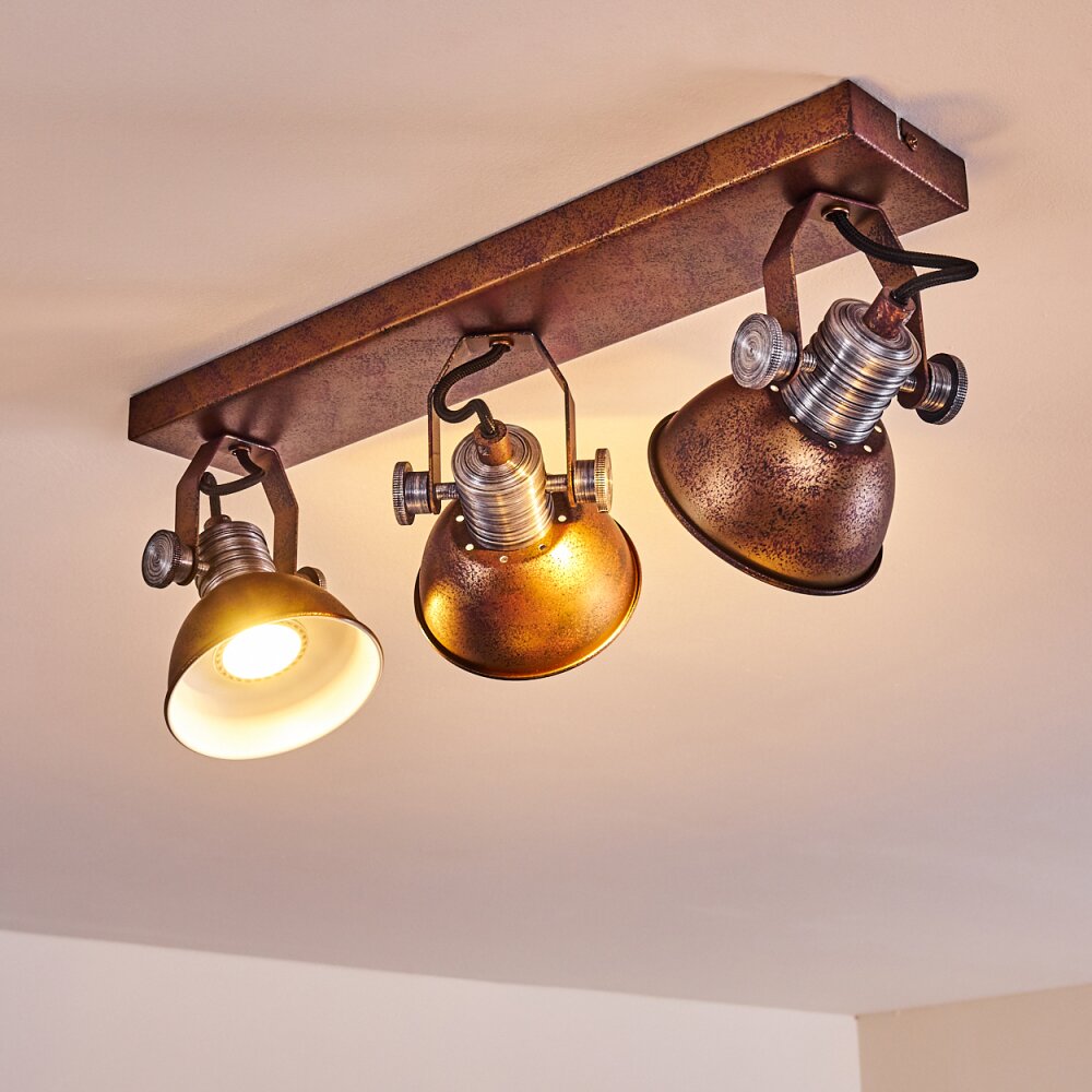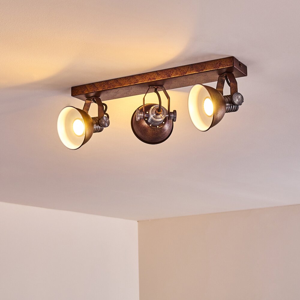 Herford Plafondlamp Hout donker, Roest, 3-lichts