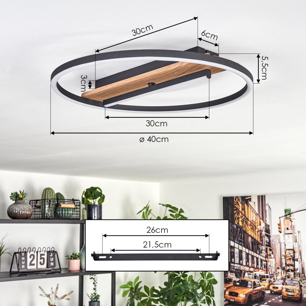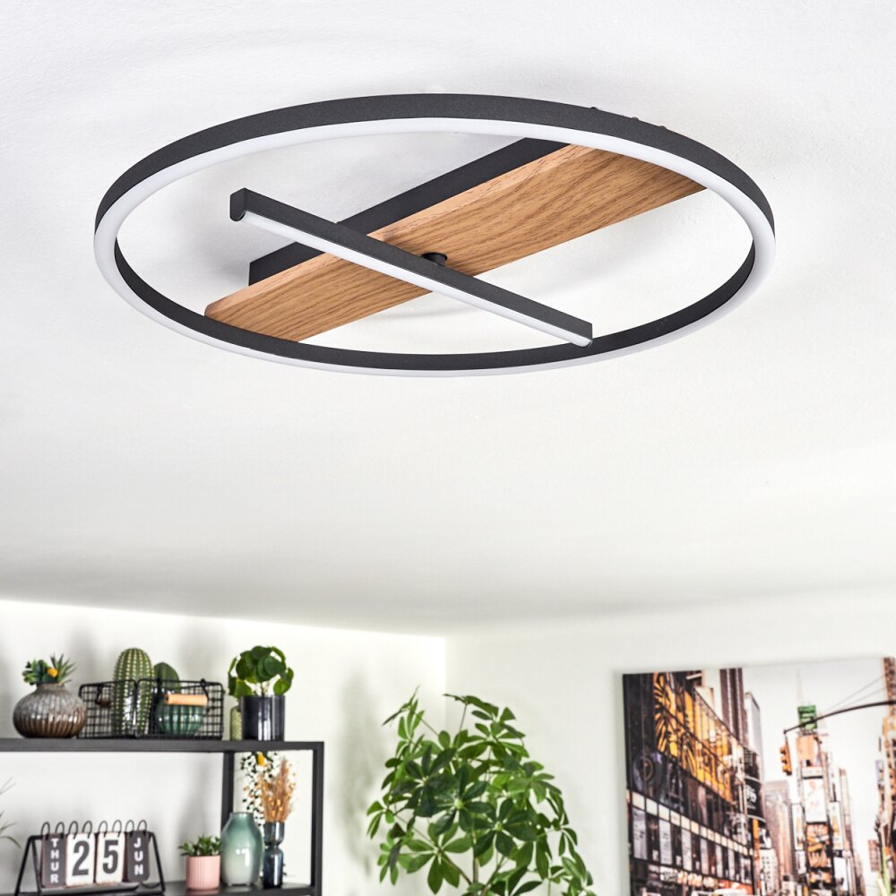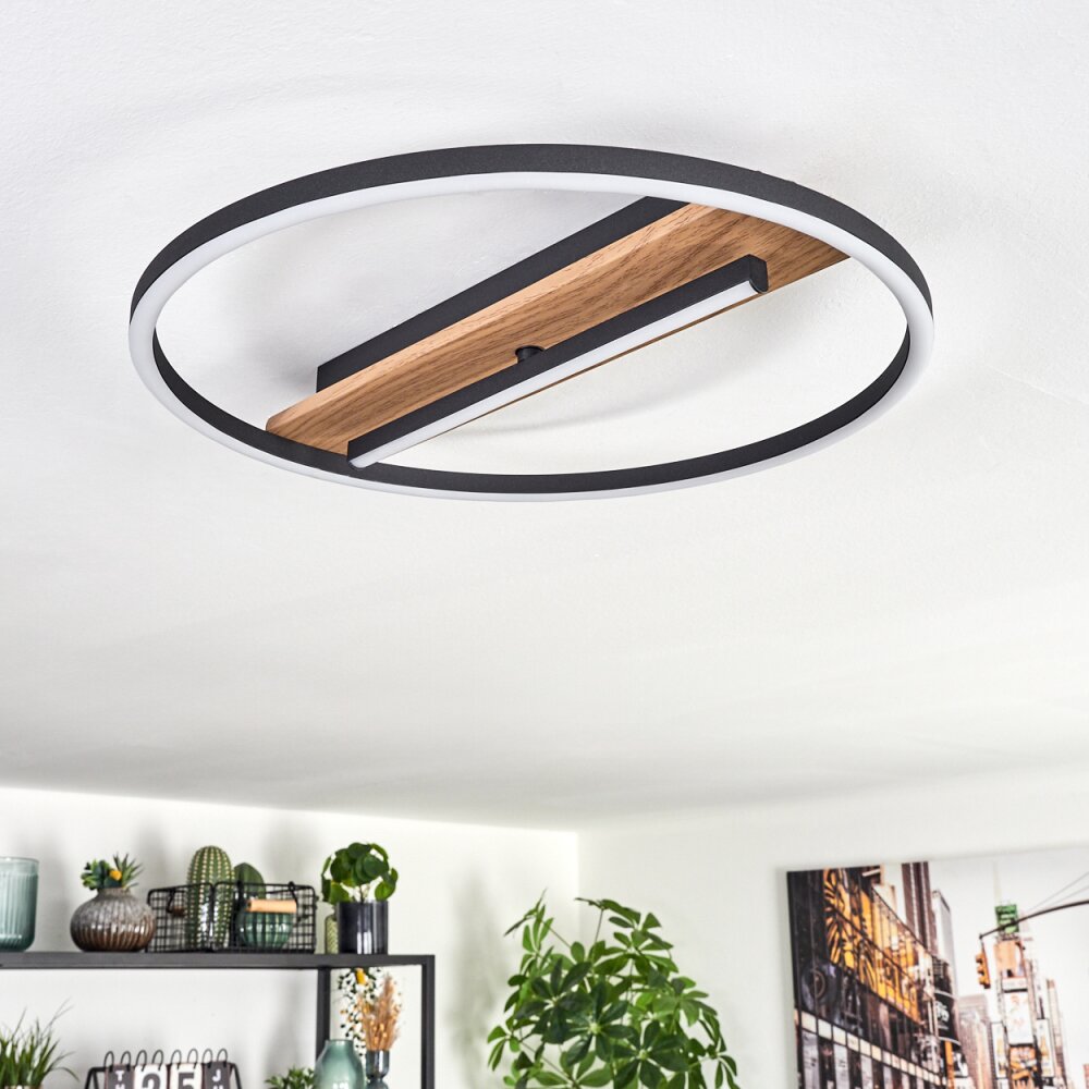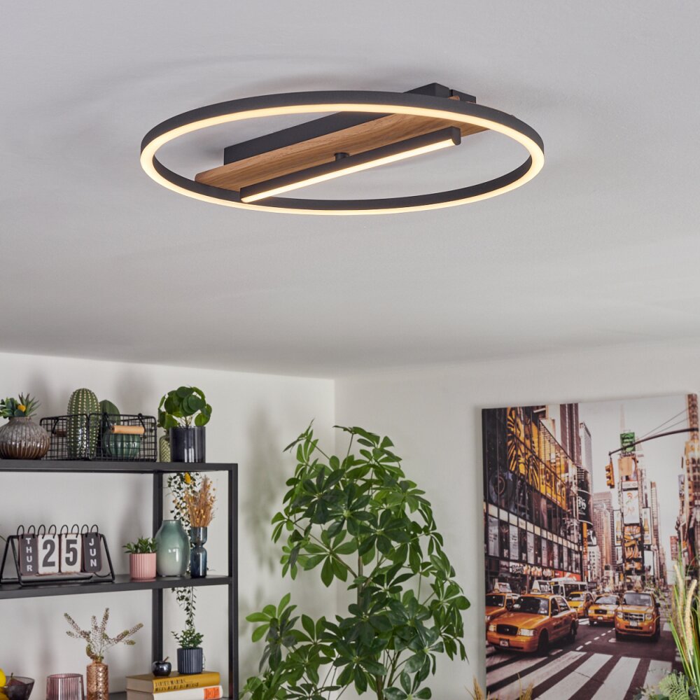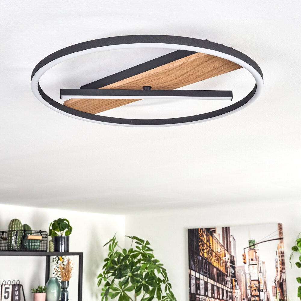 Hadel Plafondlamp LED houtlook, Zwart, 1-licht