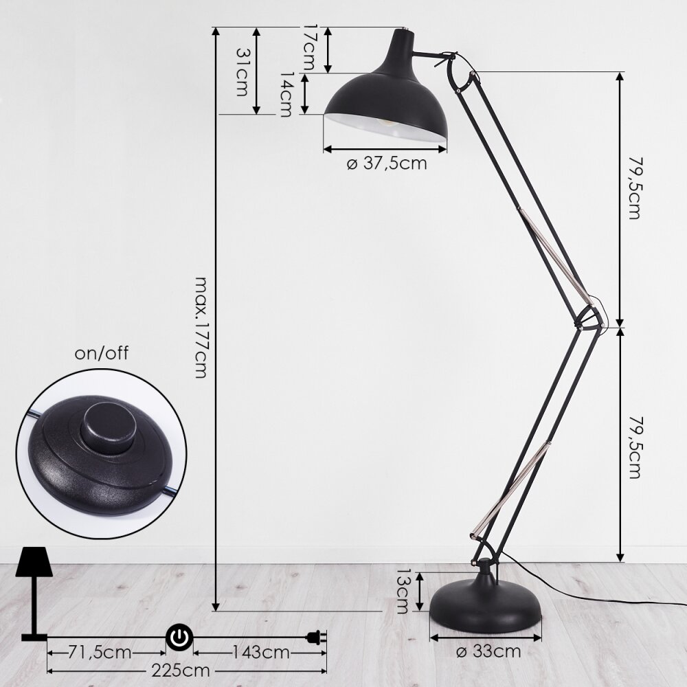 Tallaboa Staande lamp Zwart, 5-lichts, Stoffen kap