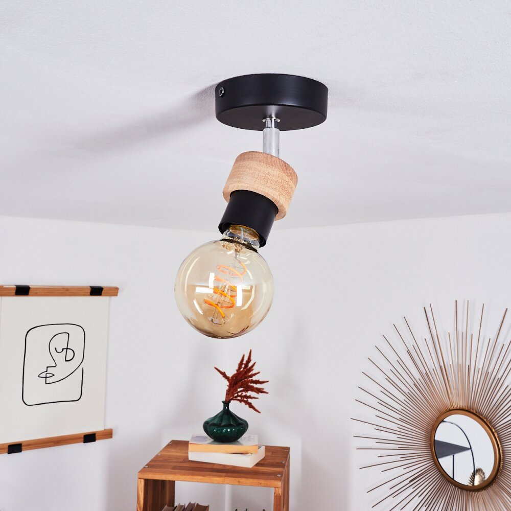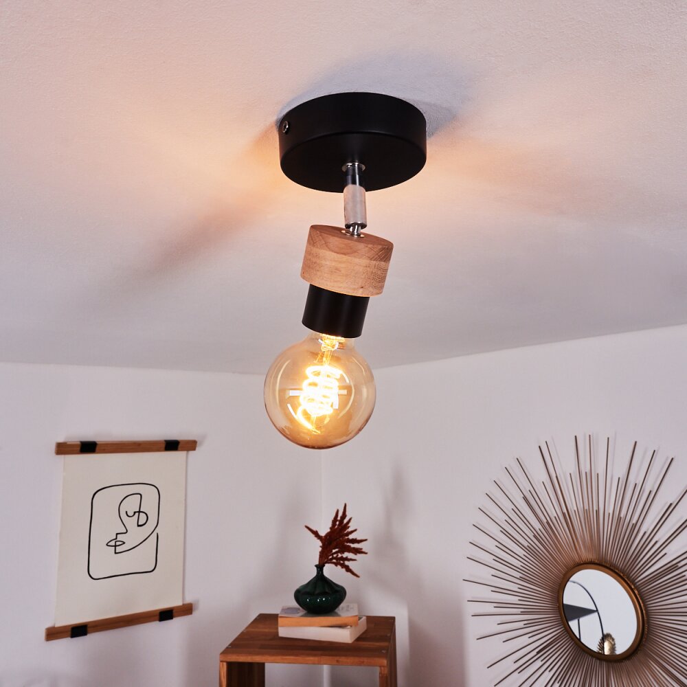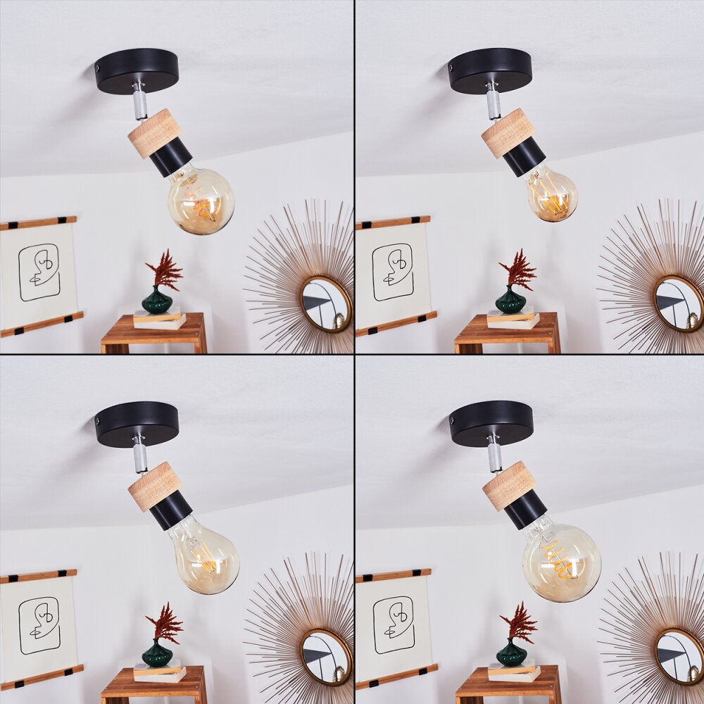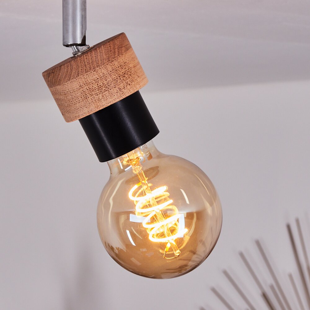 Tina Plafondlamp Chroom, Hout licht, Zwart, 4-lichts