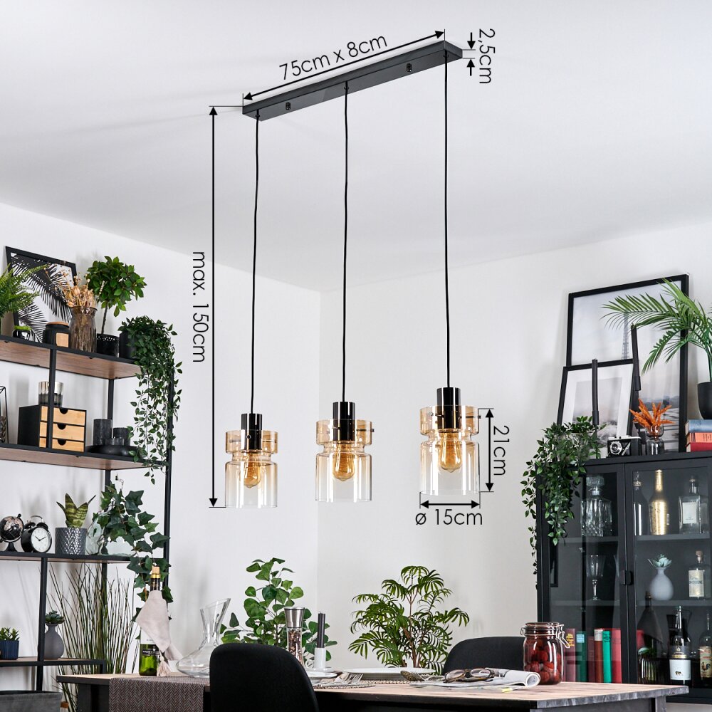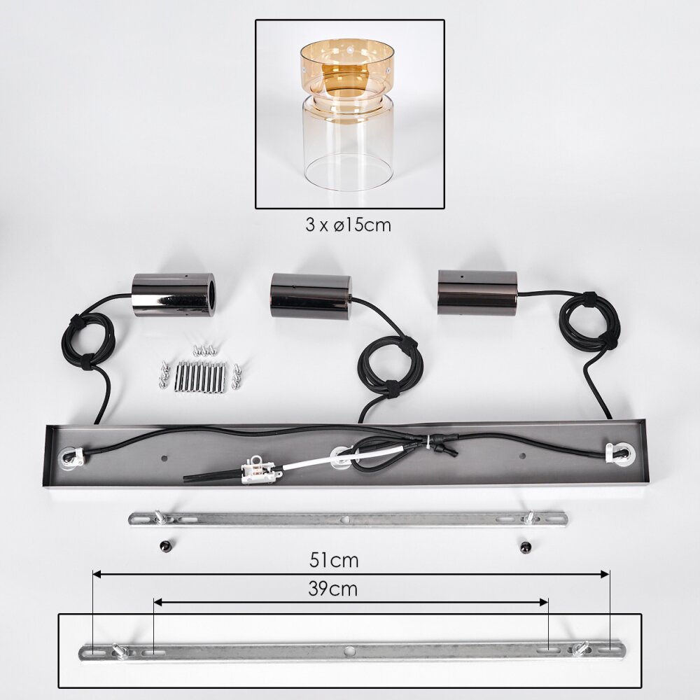 Hasvik Hanglamp, Hanglamp Chroom, Zwart, 3-lichts