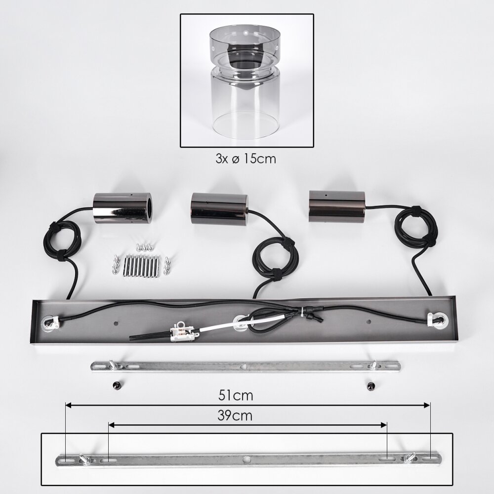 Hasvik Hanglamp, Hanglamp Chroom, Zwart, 3-lichts