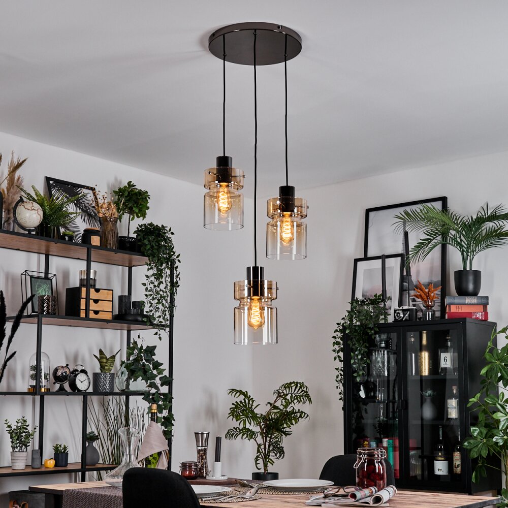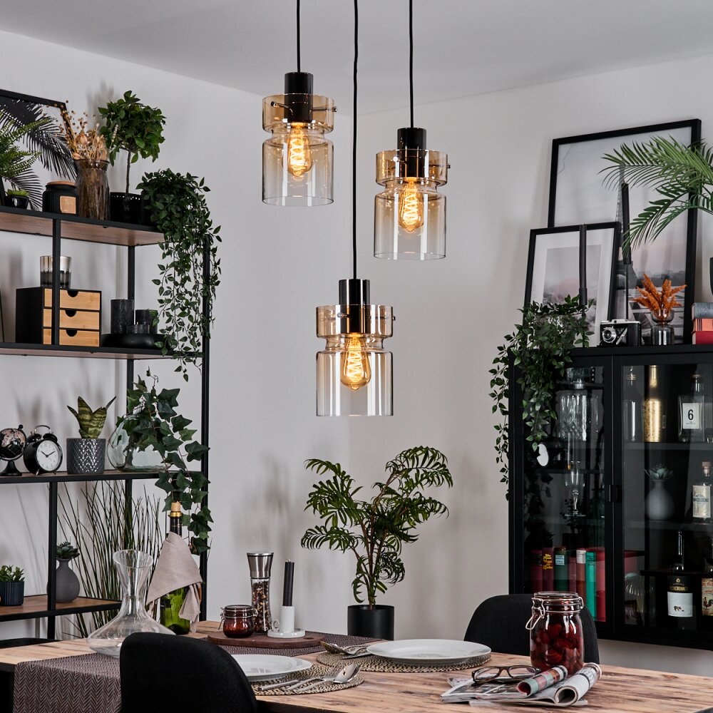 Hasvik Hanglamp, Hanglamp Chroom, Zwart, 3-lichts