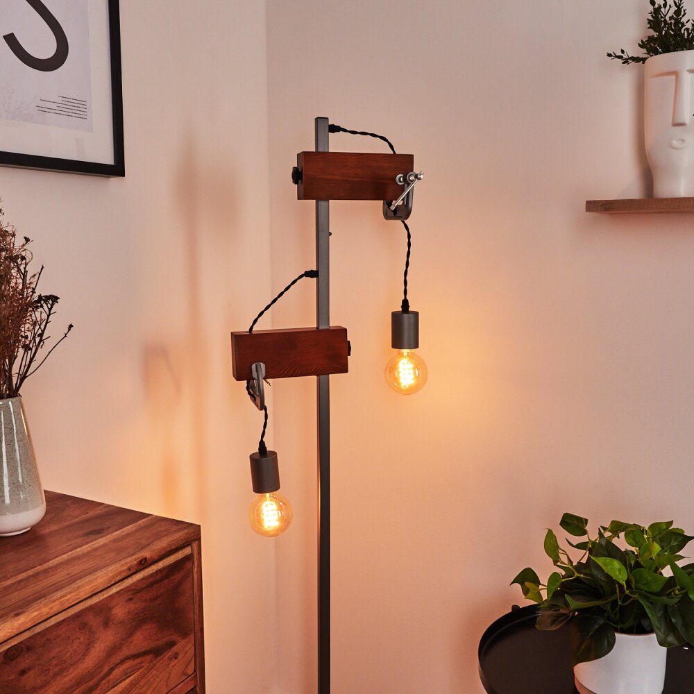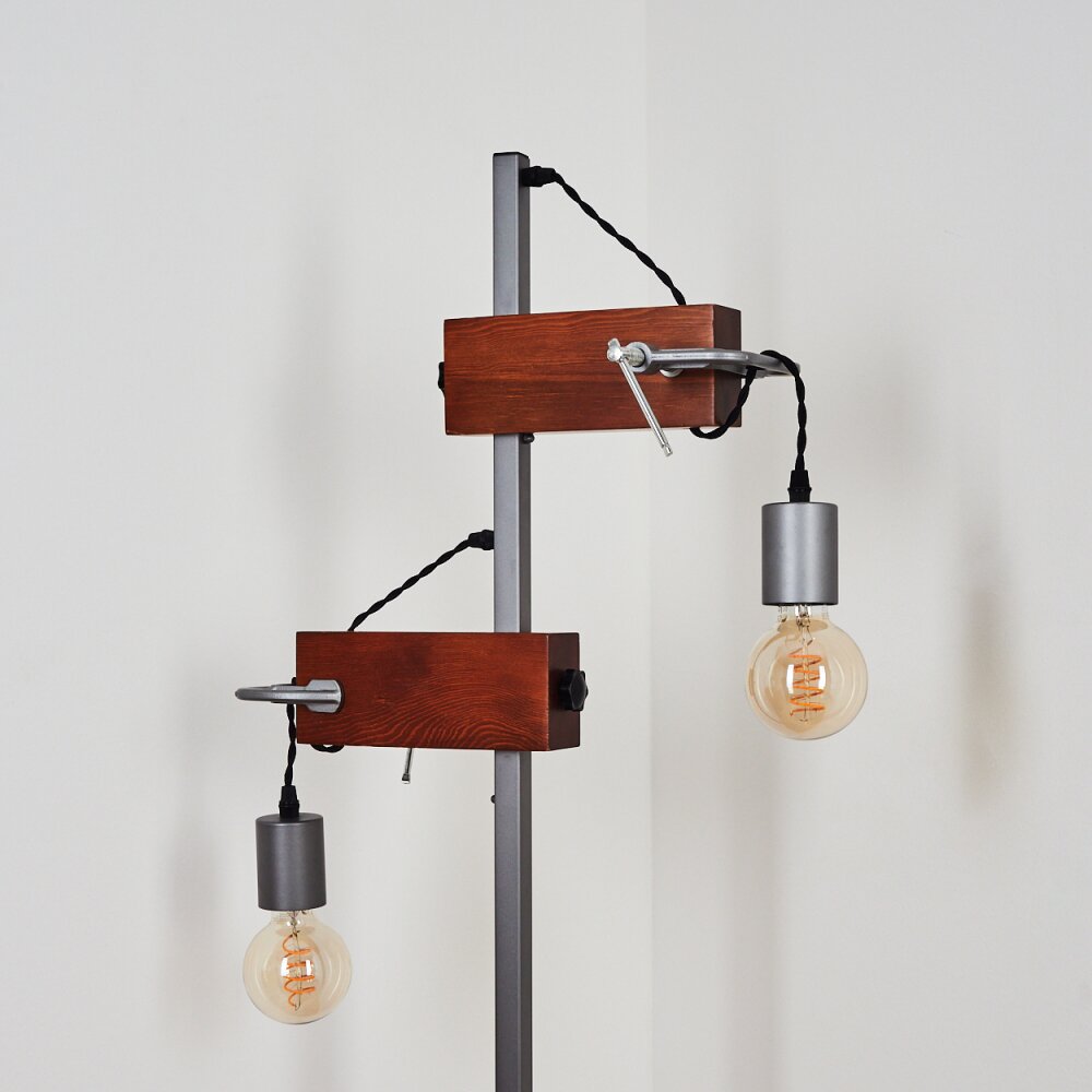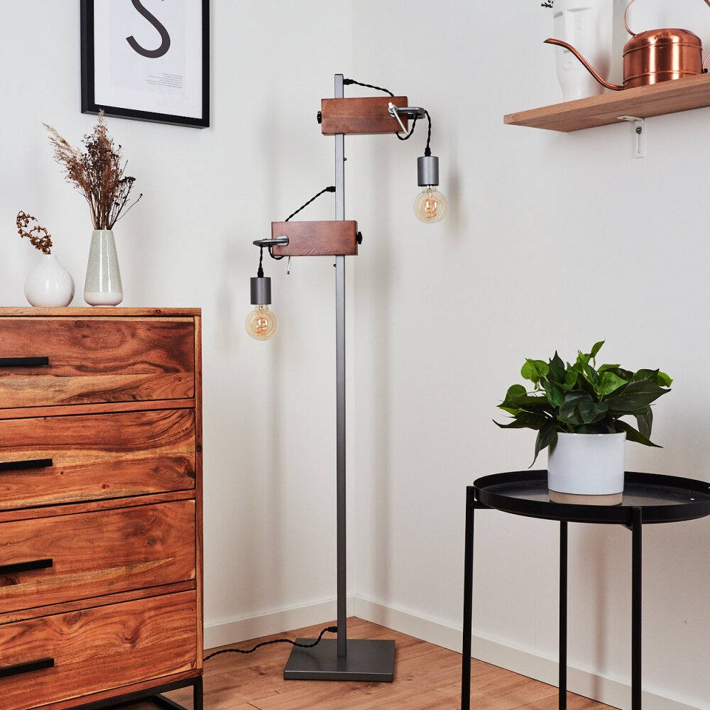Hautahi Staande lamp Grijs, Hout donker, 2-lichts