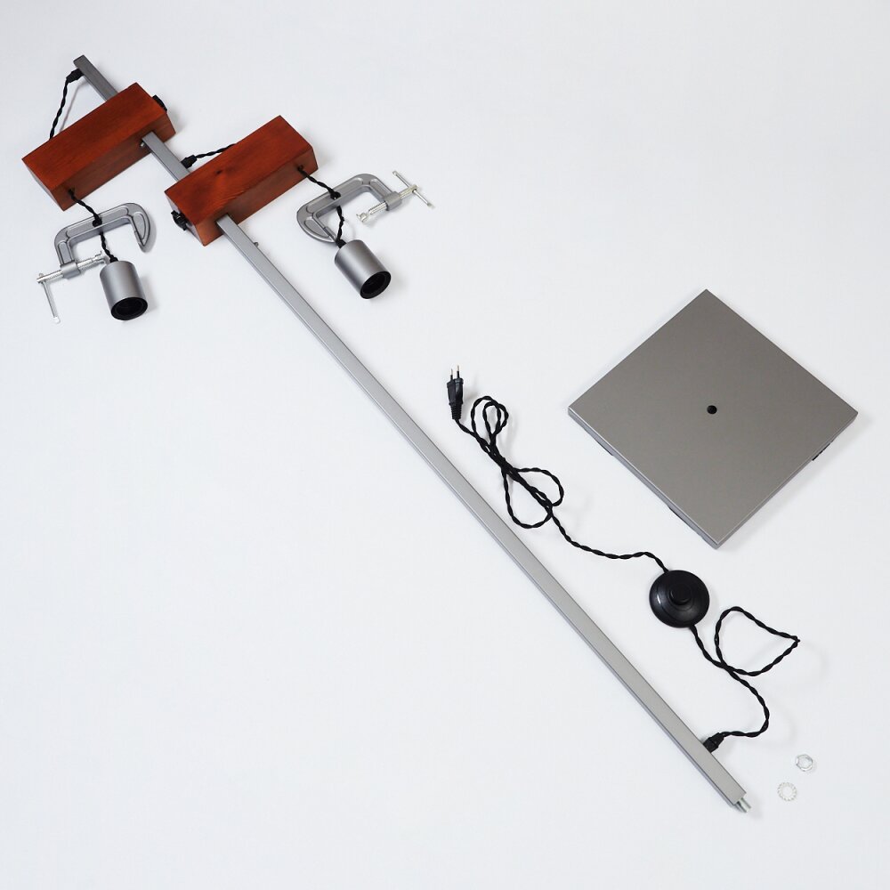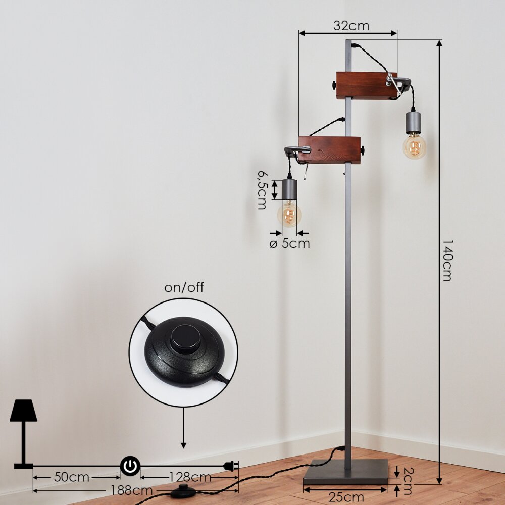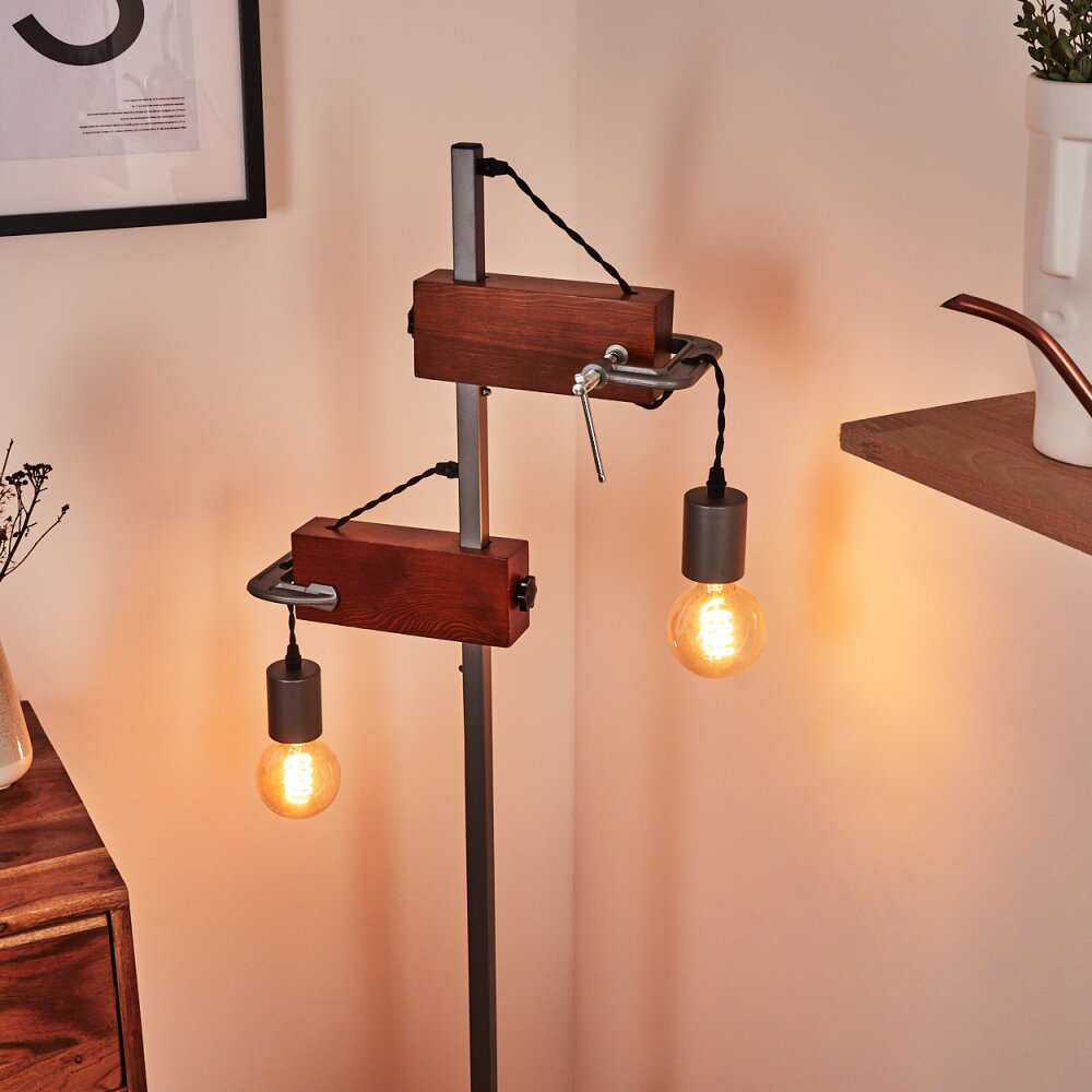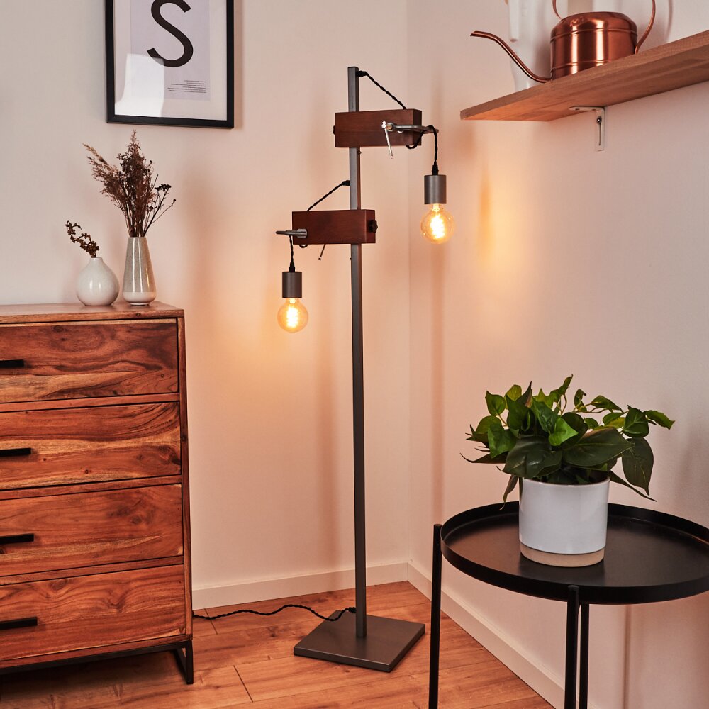 Hautahi Staande lamp Grijs, Hout donker, 2-lichts