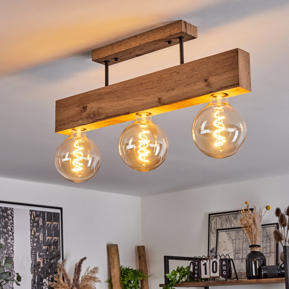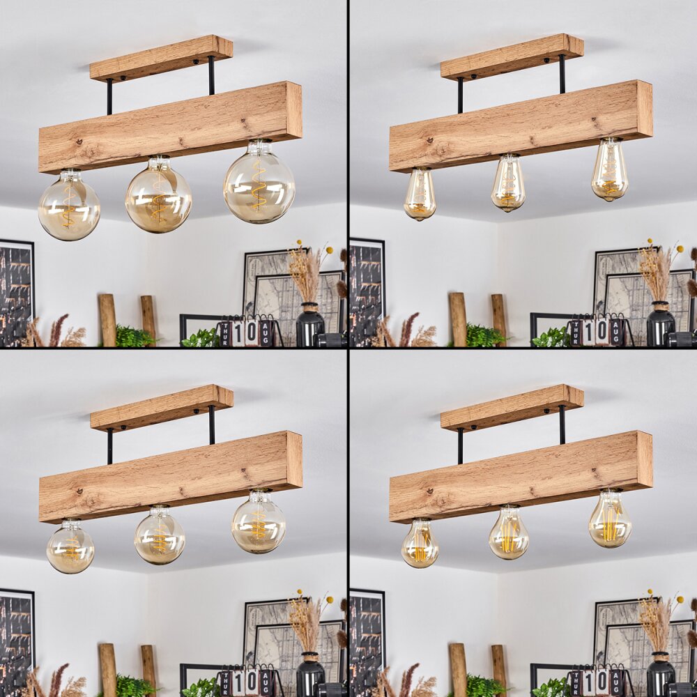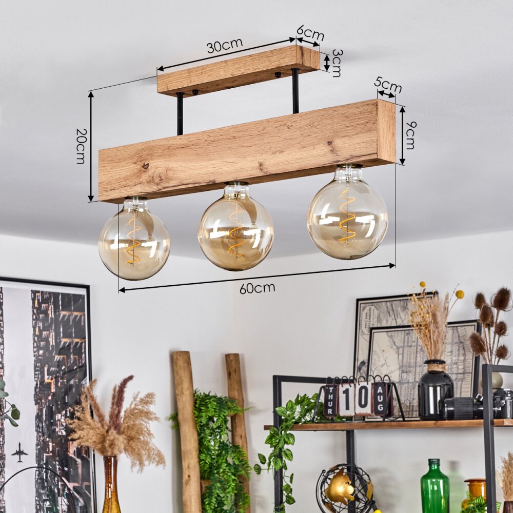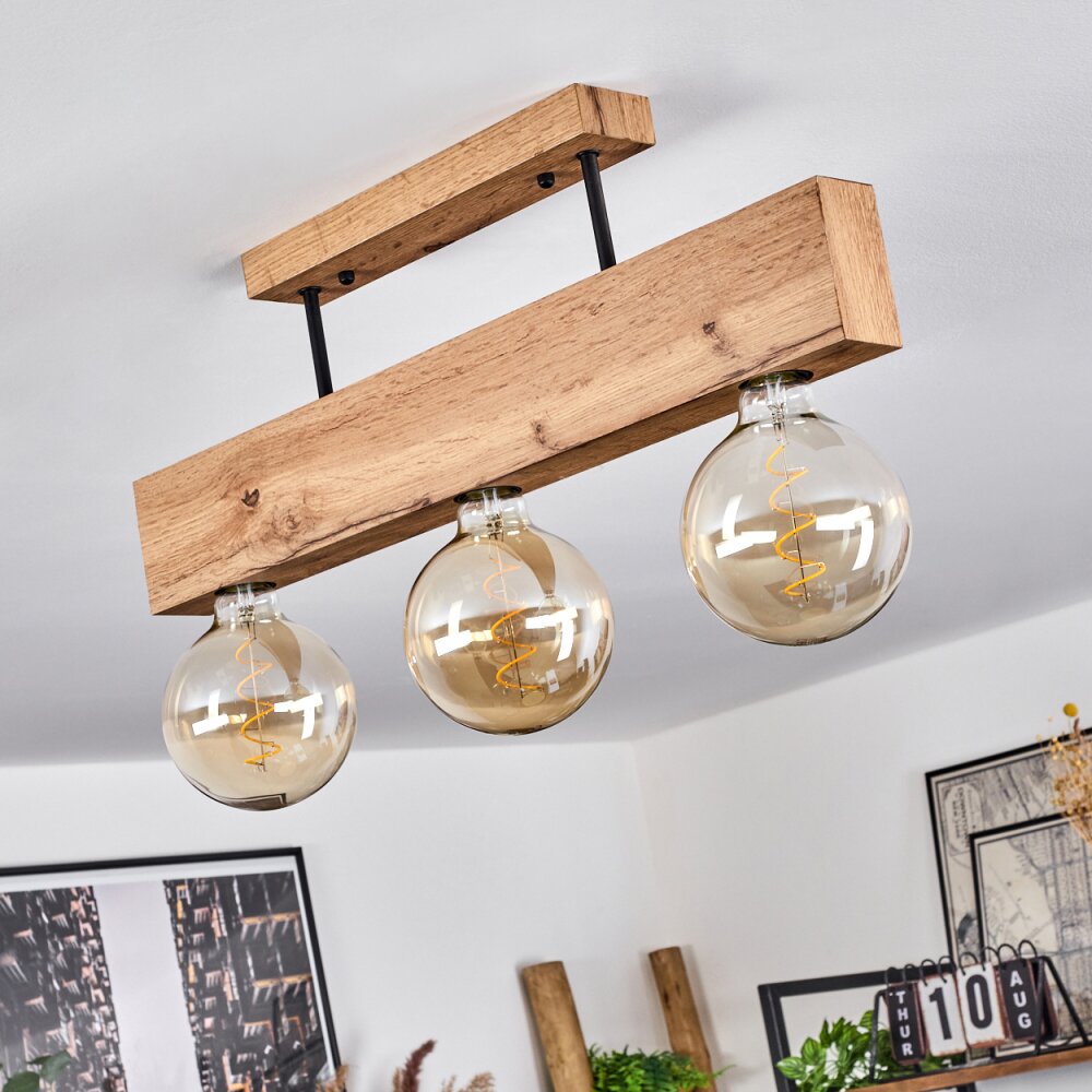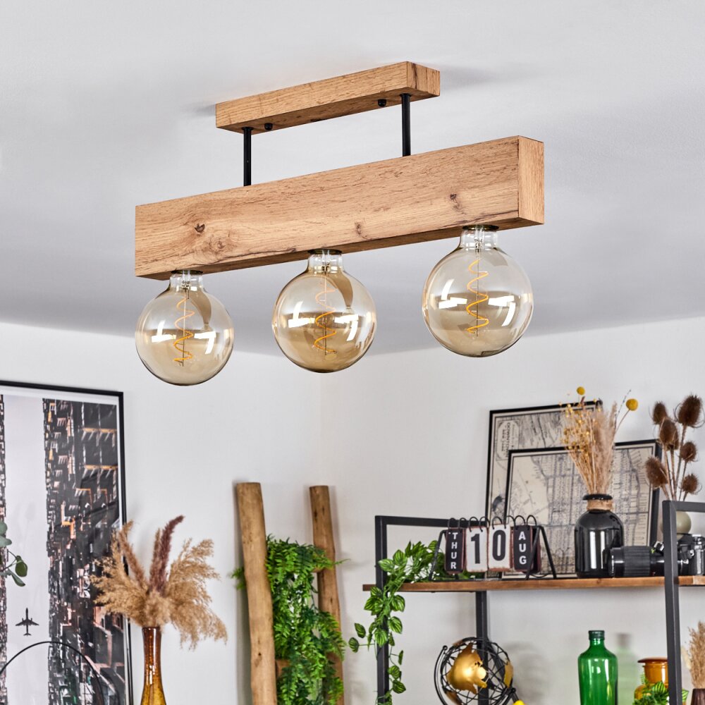 Heimola Plafondlamp Bruin, houtlook, Zwart, 3-lichts