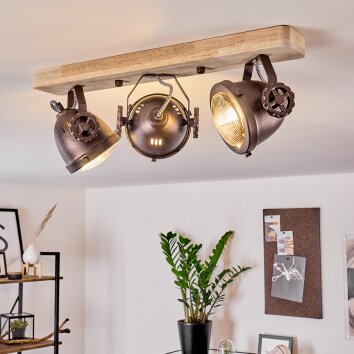 Herford Plafondlamp Bruin, Hout donker, 2-lichts