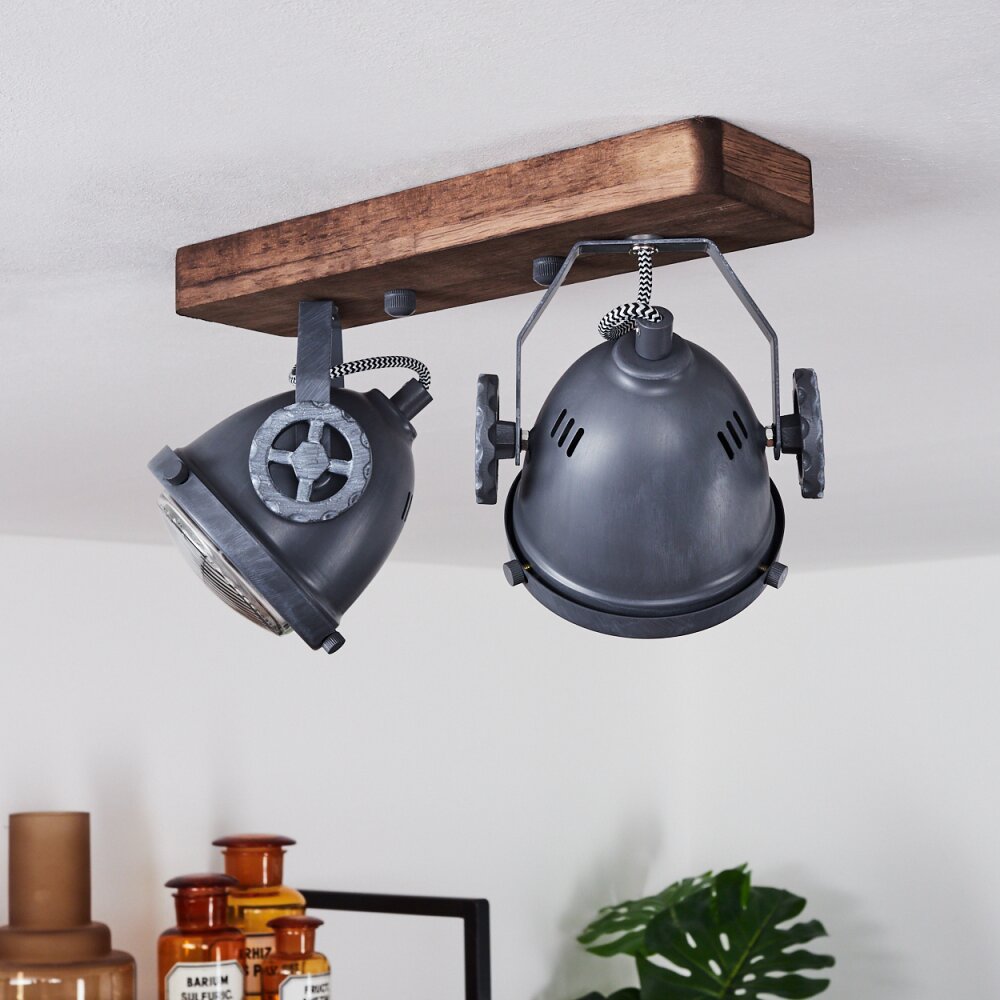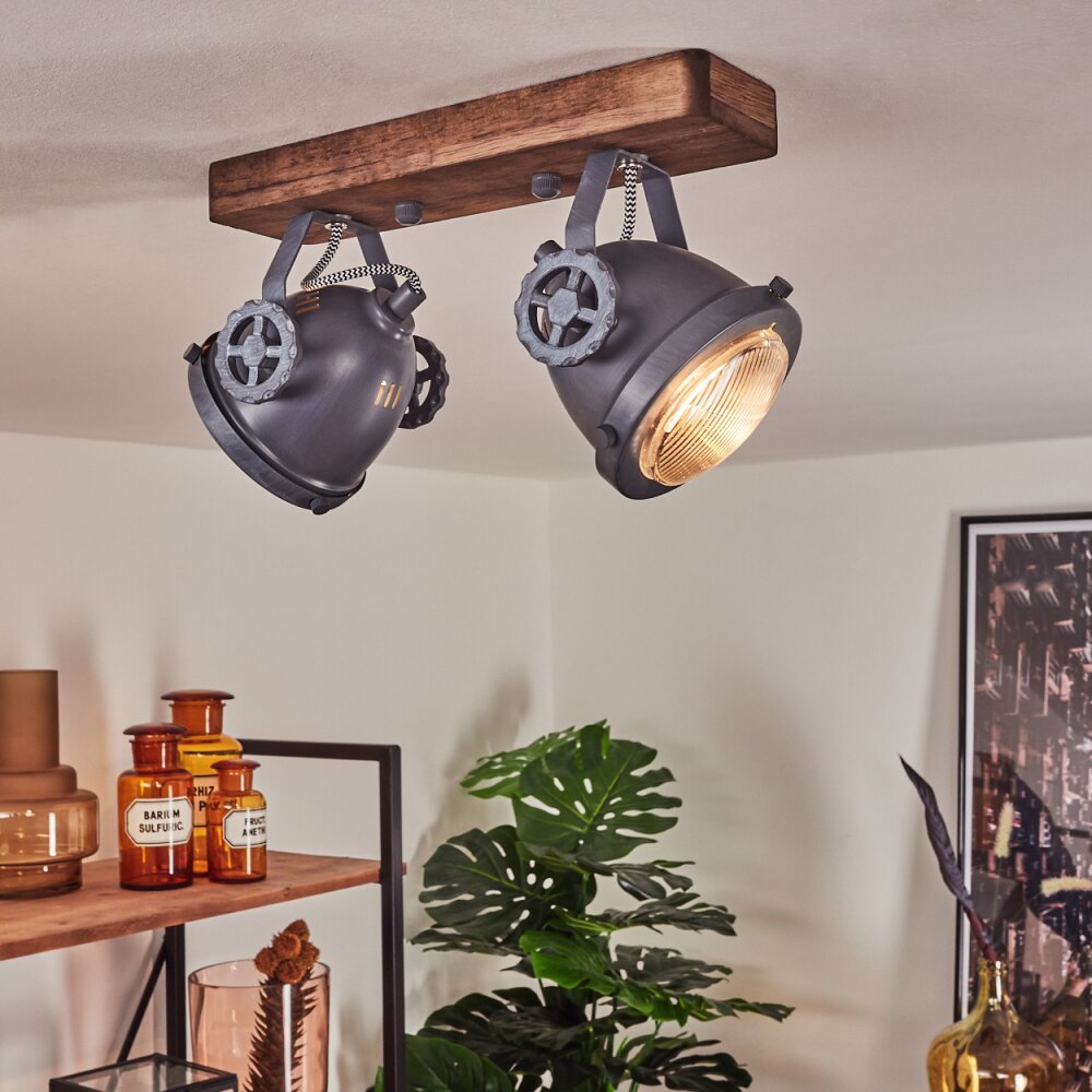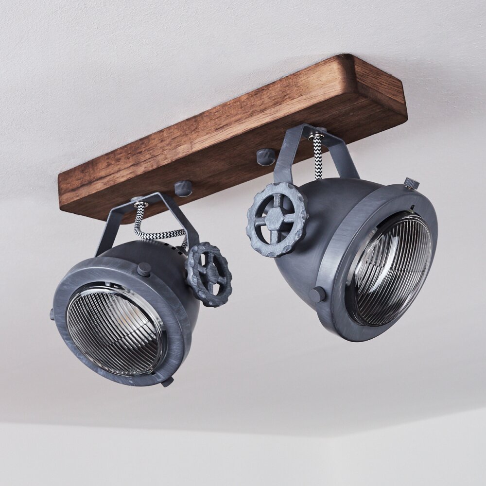 Herford Plafondlamp Grijs, Hout donker, 2-lichts